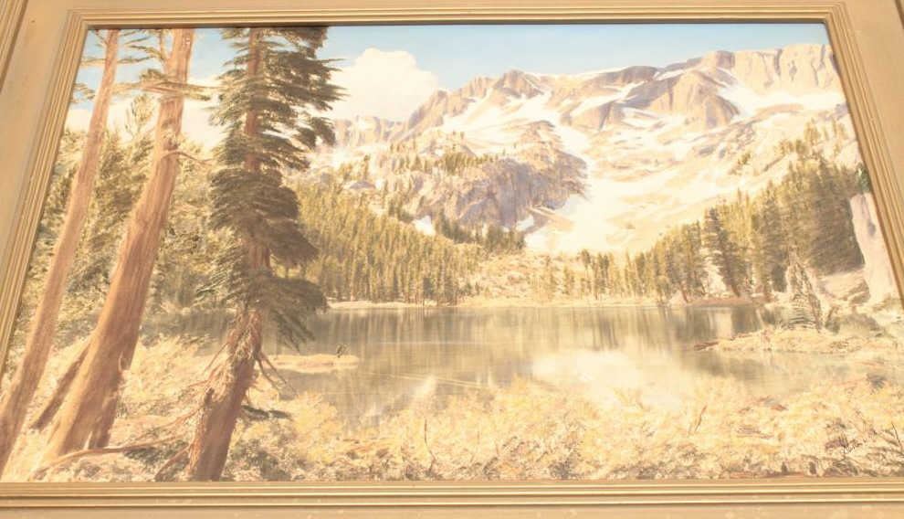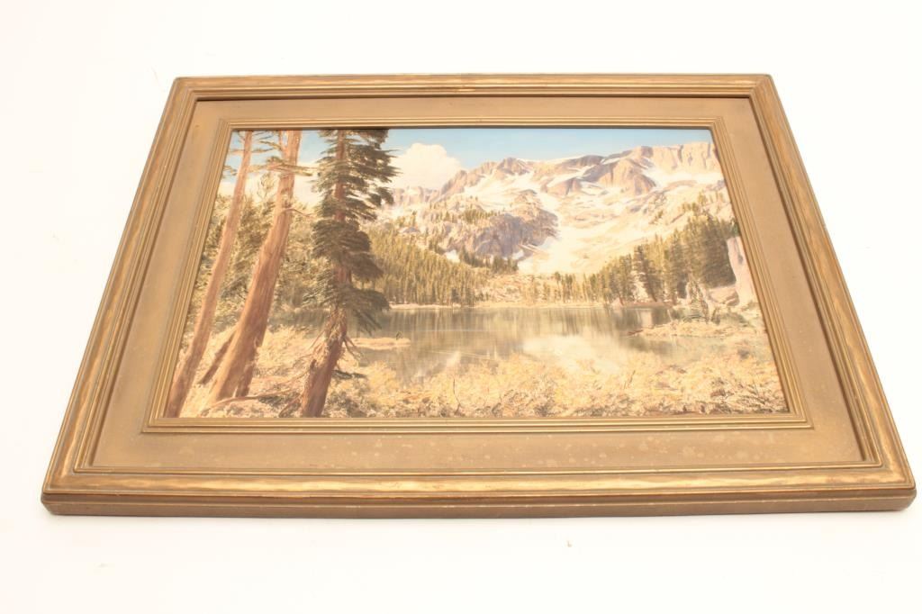 Lot 1604 T.J. Lake painting signed L.R. _____ of high Sierras, approximately 21” x 28”. From the estate