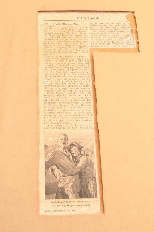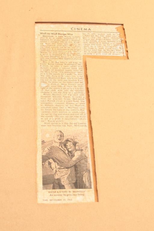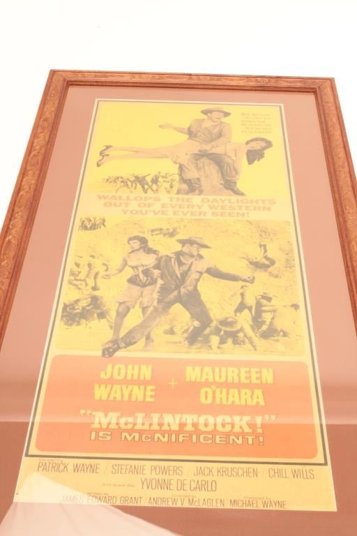 Original two color lobby poster for John Wayne movie “McClintock”; approximately 38.75” x 20.5”. From the estate of Elmer E. Taylor. Est.: $300-$600.