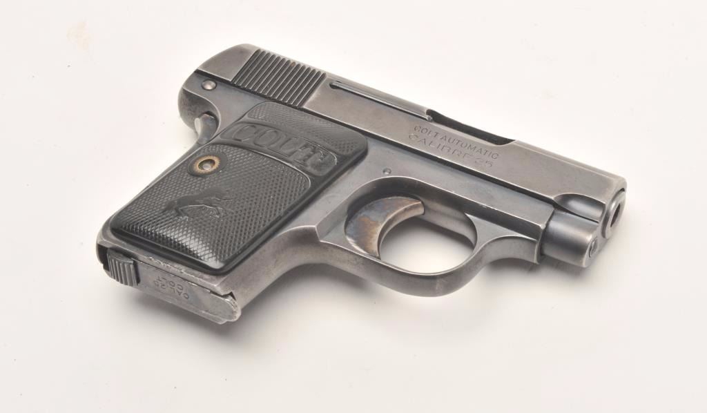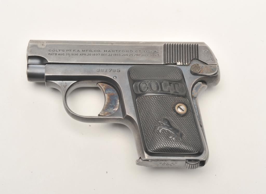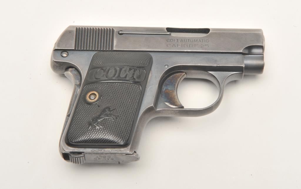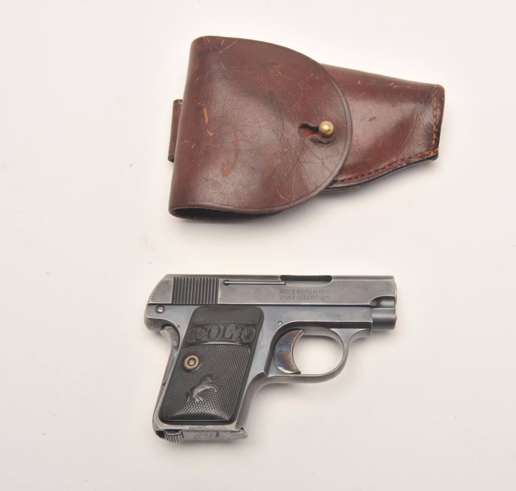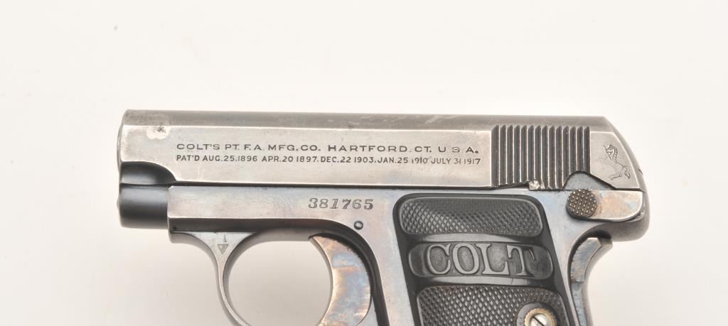 Lot 1912 Colt Model 1908 semi-automatic pocket pistol, .25 caliber, 2” barrel, blued finish, checkered blac