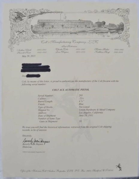 Lot 121 Colt 1911 "Ace" .22 Pistol Serial No. 295