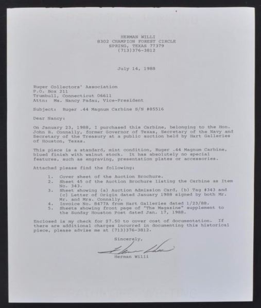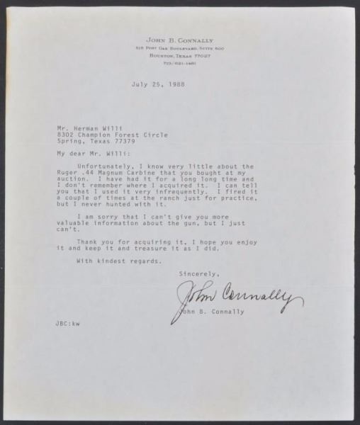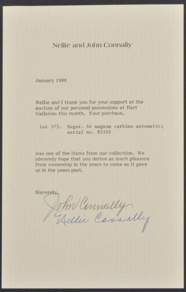 Lot 282 Texas Governor John Connally's Ruger .44 Carbine