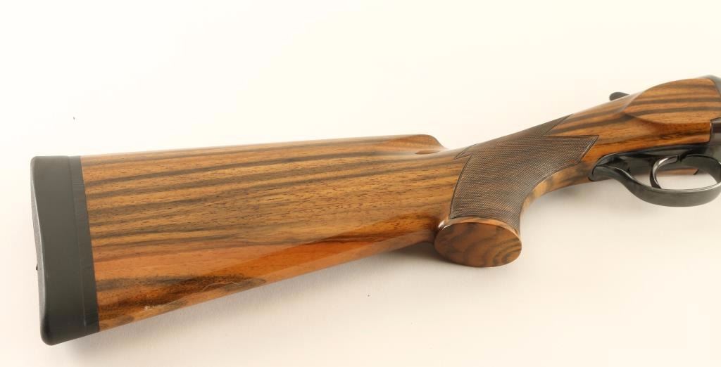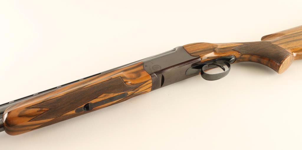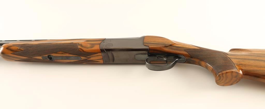 'Comp 1' High quality Italian made over/under double barrel shotgun chambered for 2 3/4" 12 Gauge shells, circa 1973. Features a blued finish, 27 1/2" ported barrels with a wide ventilated sighting rib, fixed chokes with no markings, cylindrical front sight, automatic ejectors, removable single trigger, checkered top lever, tang safety, fancy checkered figured wood forearm and pistol grip shoulder stock with Kick Eez rubber recoil pad & 14 1/4" LOP. No import marks observed. Shotgun exhibits approximately 94% of it's original blued finish with the receiver turned plum and showing some carrying wear on it's underside. The triggerguard shows some edge/handling wear and the upper tang has slide wear under the safety. Action is crisp, bores are excellent and wood stocks are very good with semi-worn checkering & small blemishes.