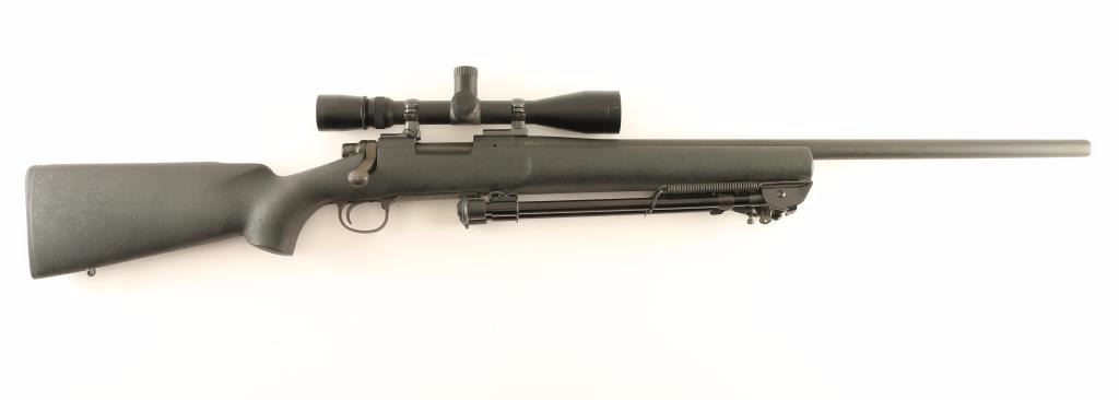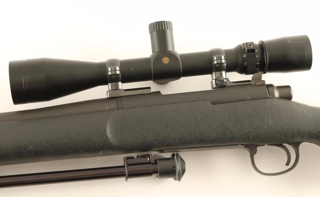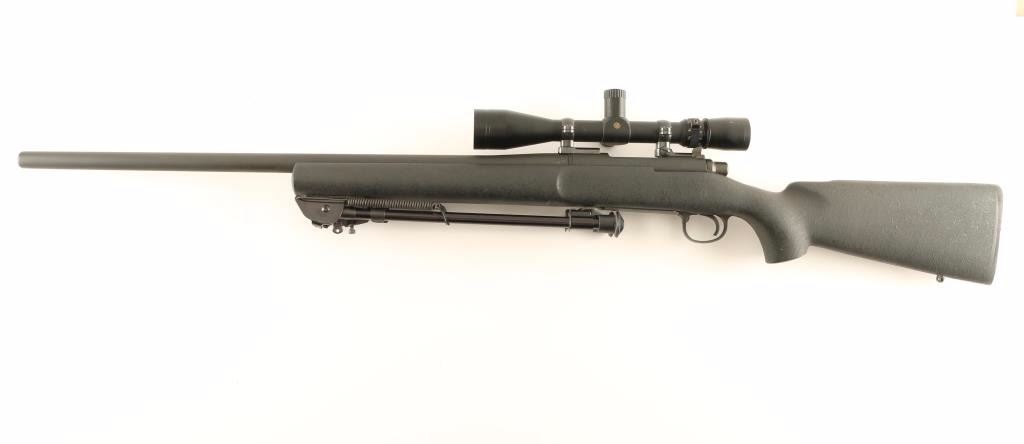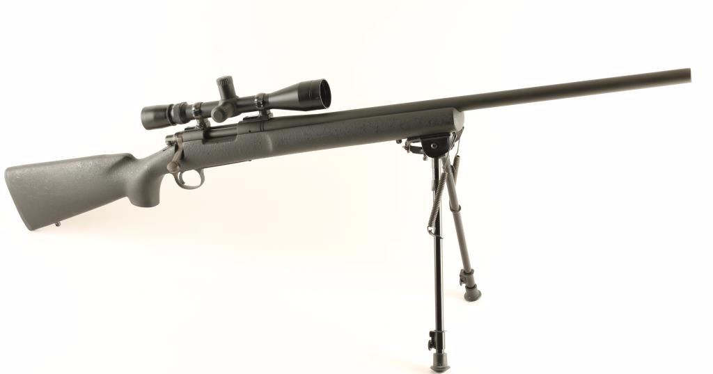 High quality bolt action sporting rifle chambered in .308 Winchester. Features a parkerized finish, 26" heavy barrel with no provisions for sights, Leupold Vari-X III 3.5-10x scope, Harris Ultralight 13.5"-23" bipod, integral box magazine with hinged floorplate, adjustable serrated trigger, manual safety, swivel studs and textured black composite pistol grip shoulder stock with pillar bedded action, semi-beavertail forend, enlarged palm swell & factory recoil pad. Rifle exhibits approximately 97% of it's parkerized finish showing a few scattered rubs, a small loss on the barrel and a small spot of emerging surface rust on the barrel. Action is very smooth, bore is excellent, optics are sharp and fiberglass stock is fine. Condition is near excellent. ***Modern Firearm***