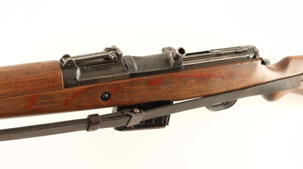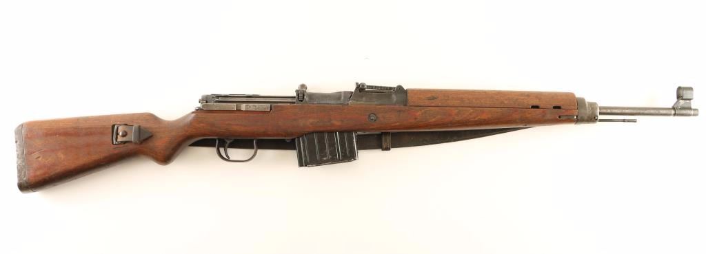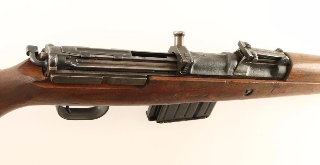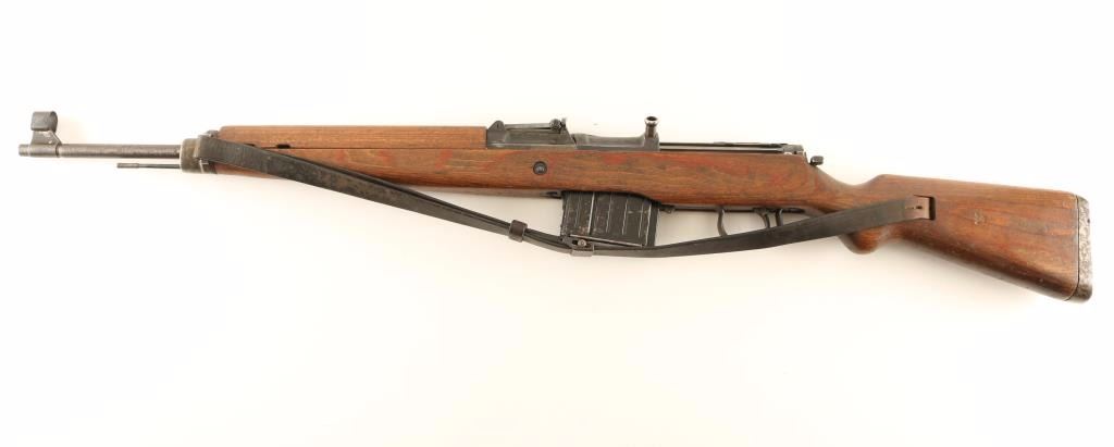 Nazi proofed German military semi-automatic service rifle chambered in 7.92x57mm Mauser, manufactured by Carl Walther circa 1944. Features a blued/phosphate finish, 22" barrel, ramped & hooded blade front sight, tangent rear sight graduated to 1,200 meters, 10 round detachable magazine, integral scope rail on the right side of the receiver, manual safety, smooth trigger, black leather sling, cylindrical charging handle with flared tip, cleaning rod, smooth laminated wood hand guard and pistol grip shoulder stock with trapdoor metal buttplate. All visible serial numbers are matching and there are no observed import marks. Markings: Receiver - "G43", "5931i", "ac44" & "[eagle]/359" stamped twice. Bolt Carrier - "5931" & "[eagle]/359". Magazine - "aye', "k43" & "[eagle]/WaAb43". Stock - "[eagle]/[swastika]/359" & "5931". Rifle exhibits a thinned finish which has turned to varying tones of patina including grey tones on the barrel and green & black tones on the rear sight base, receiver & bolt carrier. Action is smooth, bore is very good with some pin-prick pitting and wood stocks are very good. Condition is very good. ***C&R Firearm*** ***Modern Firearm***