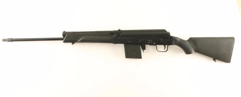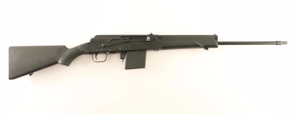 Russian made AK platform semi automatic shotgun chambered for 3" .410 gauge shells. Imported by RWC Group LLC of Tullytown, P.A. with import marks on the receiver. Features a matte black finish, 20" threaded barrel with No. 3 choke installed, bead front sight, dovetailed rear window sight, side mounted scope rail on receiver, smooth trigger, manual safety, 5 round factory magazine, smooth black synthetic forend and checkered pistol grip shoulder stock. Shotgun exhibits some small scattered losses which are mostly concentrated on the top cover. Action is smooth, bore is excellent, and stocks are near fine with minor scuffs & few scratches. Condition is very good+++. ***Modern Firearm***