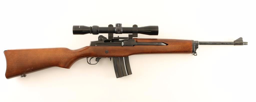 American made semi-automatic sporter rifle chambered in .223, circa 1980.Features a blues finish,18.5in barrel, nice full wood stock including hand guard,3-9x32 tasco scope that fits the overall look of the gun, B square scope mount, factory iron sights,factory 20 rd magazine, classic American style action.The rifle retains approximately 90% of its original bluing, wood shows some minor wear but a beautiful piece.Bore appears to be excellent but dirty, Smooth operating, Nice example of an early mini-14. Overall condition very good for its age *Modern firearm*