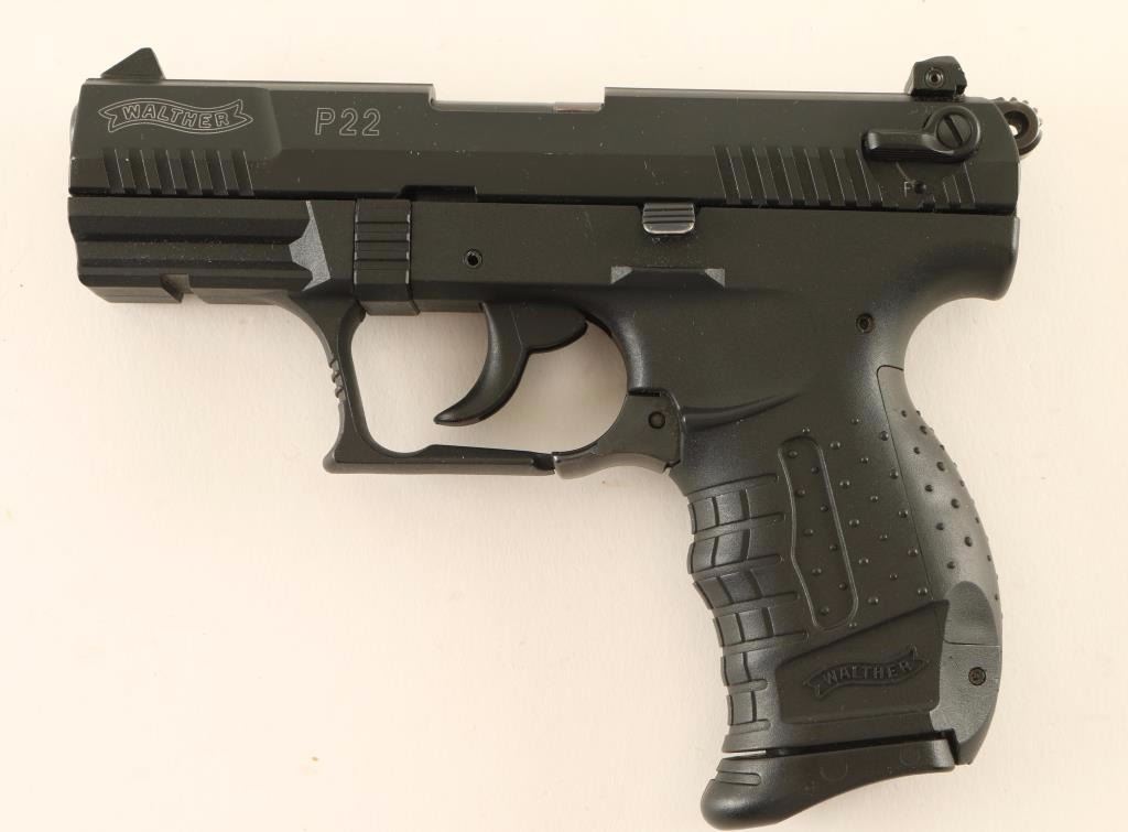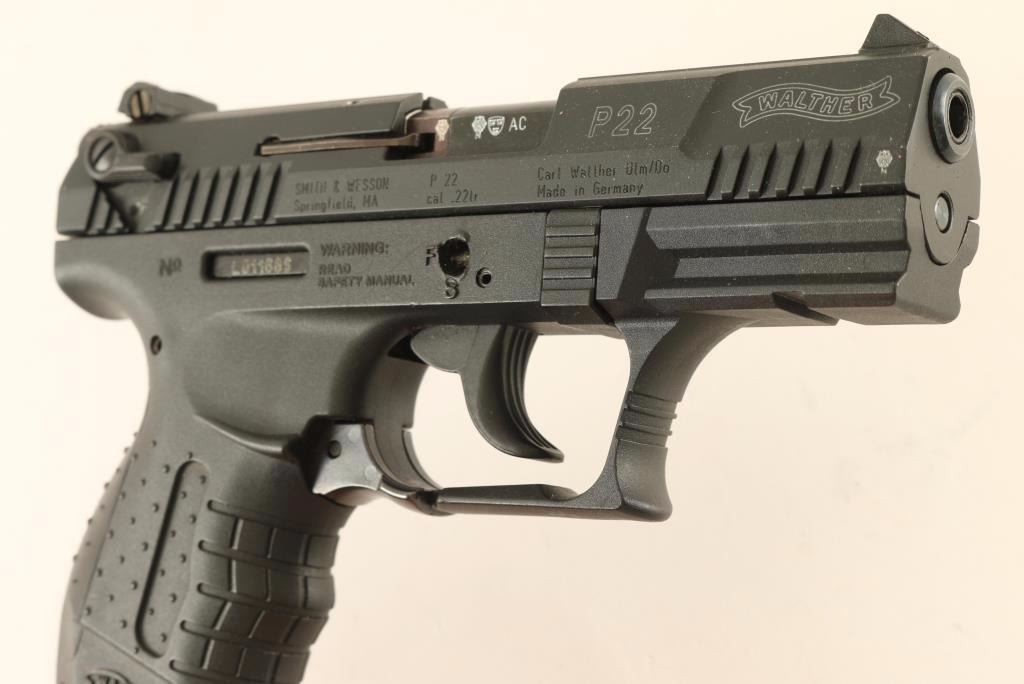 German made double action semi-automatic pistol chambered in .22 Long Rifle. Imported by Smith & Wesson of Springfield, MA with import marks on the slide. Features a 3.5" threaded barrel, three dot sights, matte blued steel slide with dual cocking serrations, ambidextrous thumb safety & magazine release, 10 round factory magazine, internal locking safety, serrated round hammer spur, serrated polymer trigger and black polymer frame with integral accessory rail & pebbled grip. Pistol exhibits approximately 97% of it's blued finish showing some minor scattered losses. Action is smooth, bore is bright with what appear to be pitting towards the muzzle and polymer are fine. Condition is very good. ***Modern Firearm***