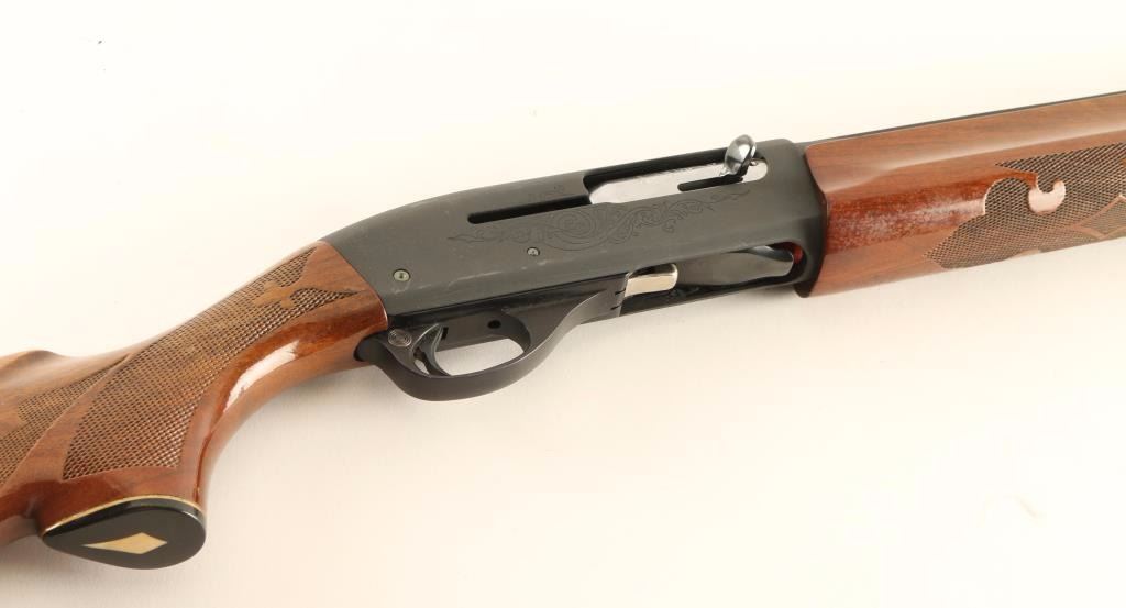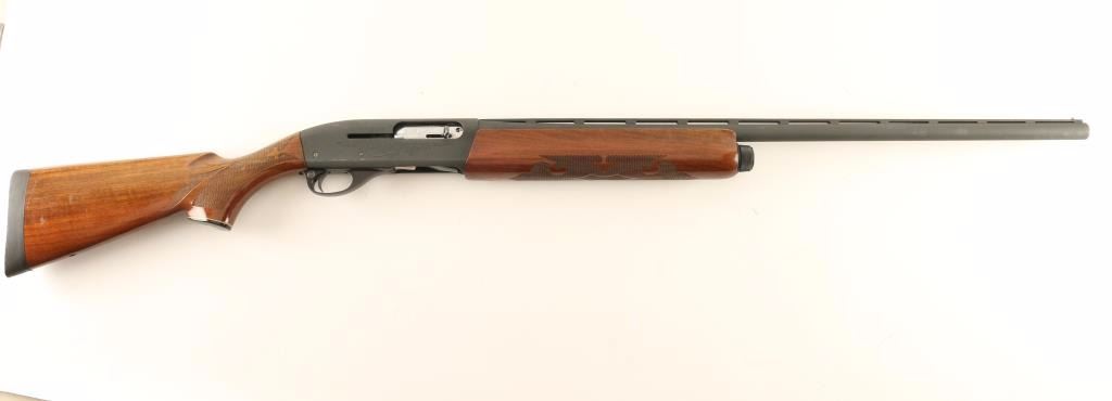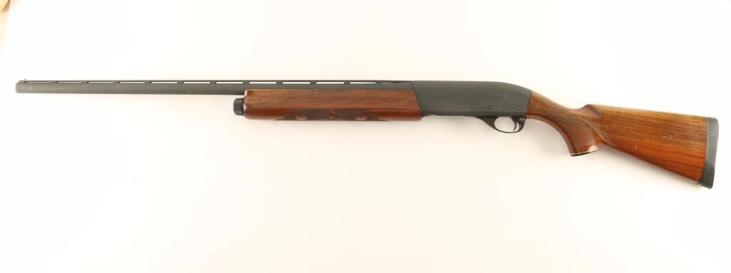 Semi-automatic shotgun with a grey parkerized finish, 28" vent rib barrel, 2 3/4" chamber, full choke, tube magazine, light coverage scroll 'engraved' receiver & bolt, and fancy press checkered wood stocks with recoil pad & 14" LOP. Approximately 95% parkerizing retained showing bright scuffs with a few scattered losses. Action is strong, bore is very good and wood stocks are very good+. Condition is very good++. ***Modern Firearm***