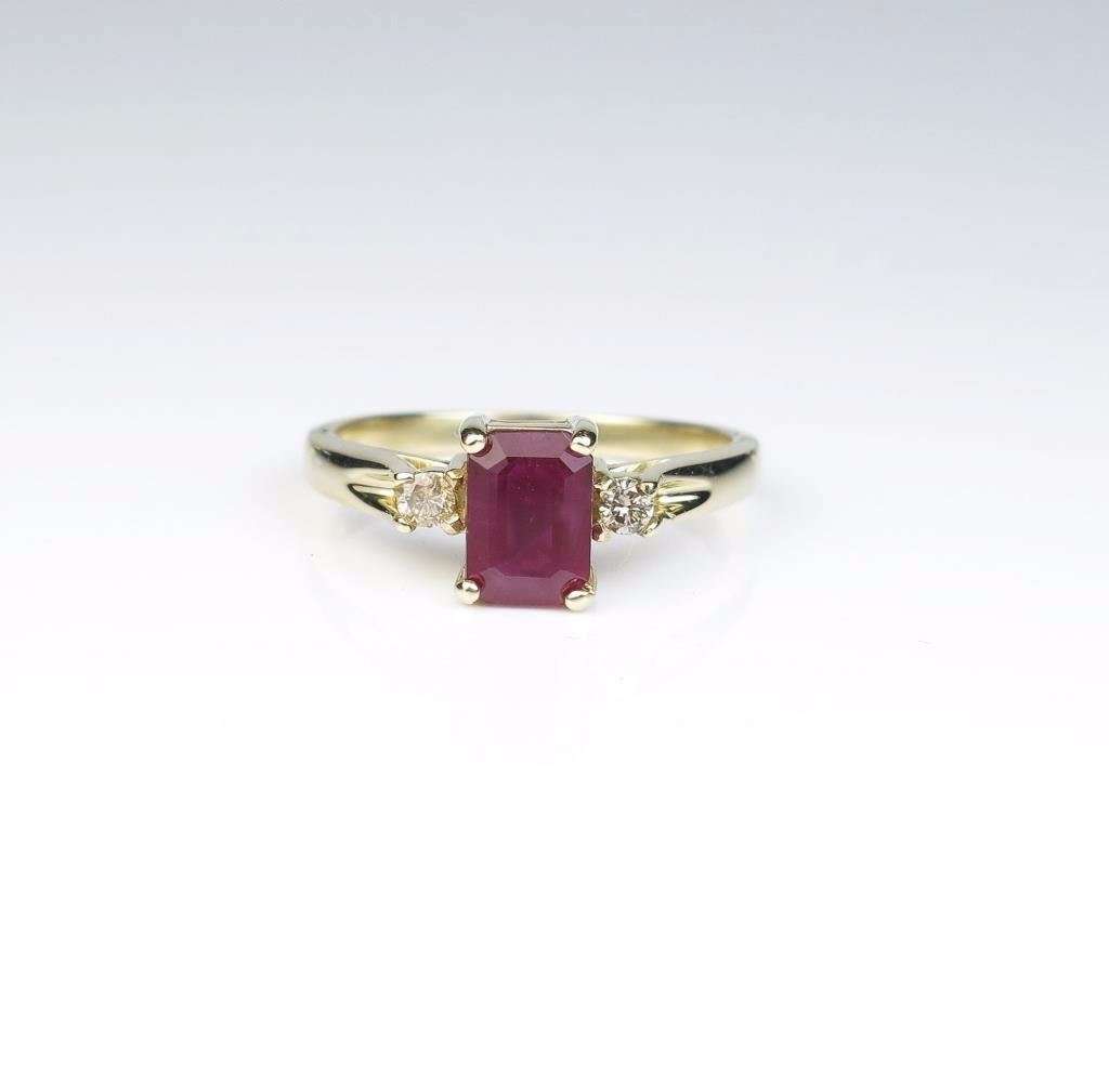 Lot 374a Very Nice Ring Featuring a Red Emerald Cut Ruby