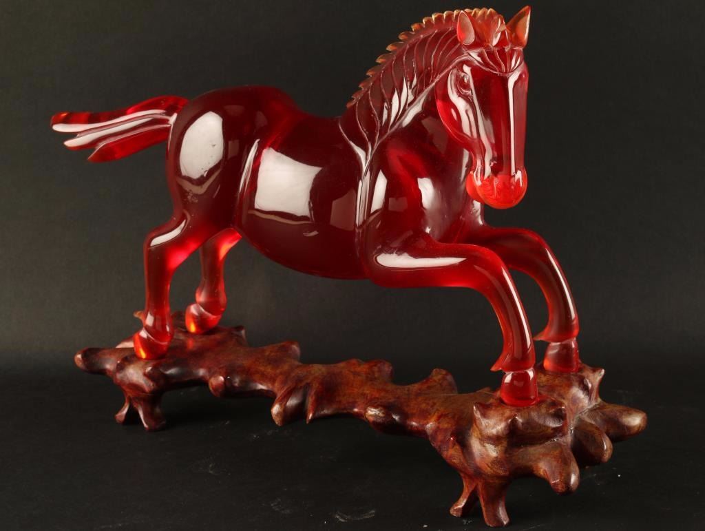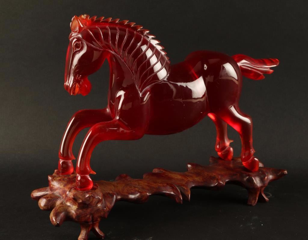 Lot 383 Unusual Chinese Amber/Resin Carved Horse