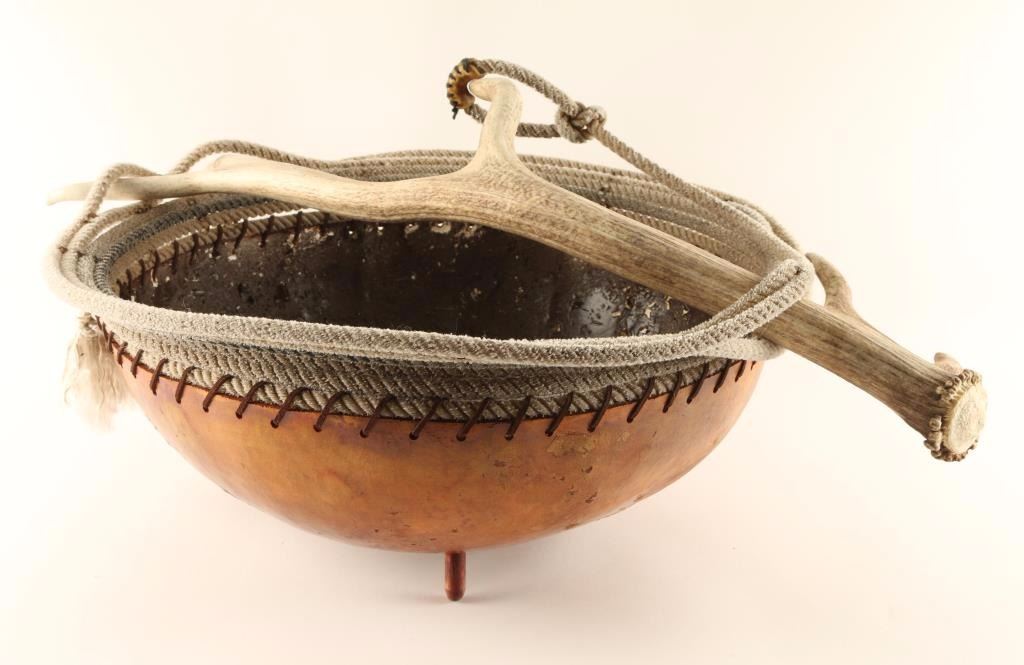 Gourd accented with lariat and antler for handle. Great Western decor item. Measures 8"x19".