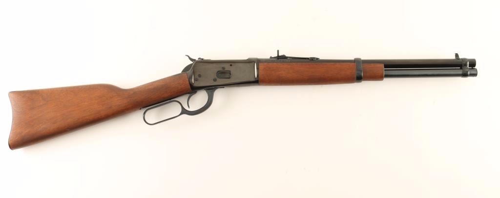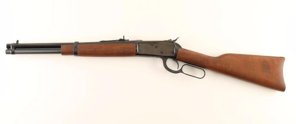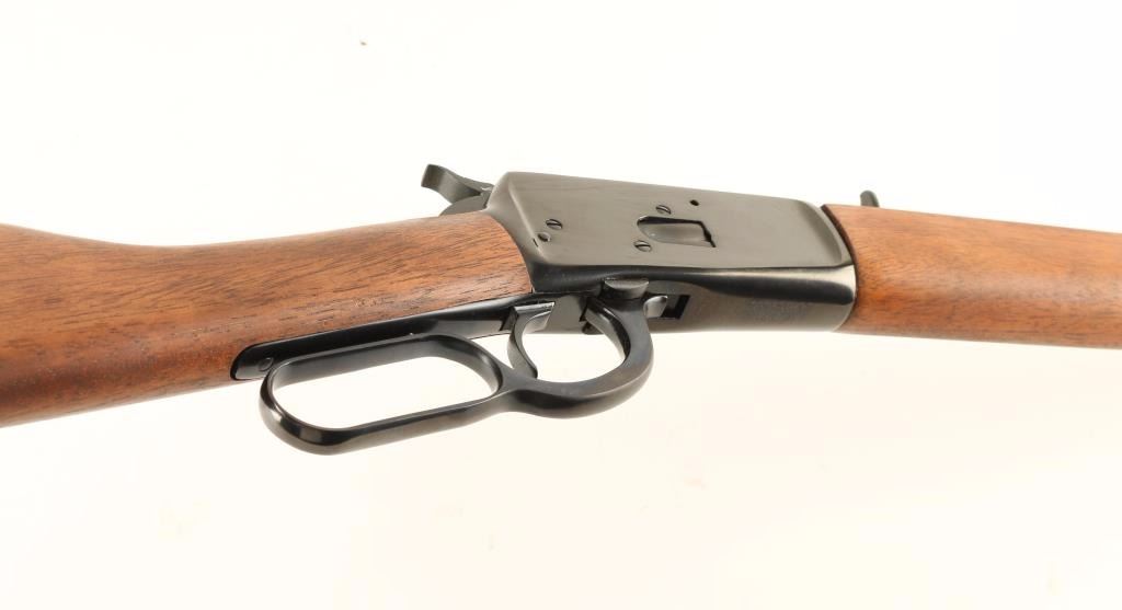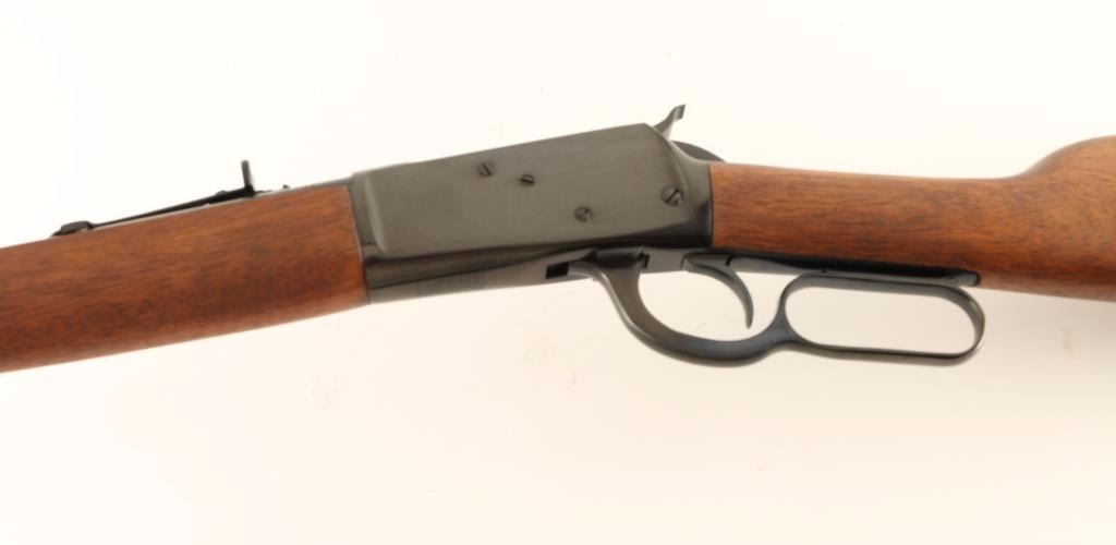 Brazilian made copy of the Winchester 1892 lever action repeating rifle, chambered in .44 Magnum. Features a blued finish, 16" barrel, dovetailed blade front sight with brass bead, adjustable semi-buckhorn rear sight, full-length tube magazine, smooth trigger, serrated trigger spur, rotating safety on the bolt, smooth wood forend and straight grip shoulder stock with metal carbine buttplate. Rifle exhibits approximately 98% of it's original blued finish showing a single small loss on the loading gate, slide wear on the top of the hammer and a slightly uneven tone on the receiver flats that may just be dried grease. Action is smooth, bore is pristine and wood stocks are fine. Condition is excellent. ***Modern Firearm***