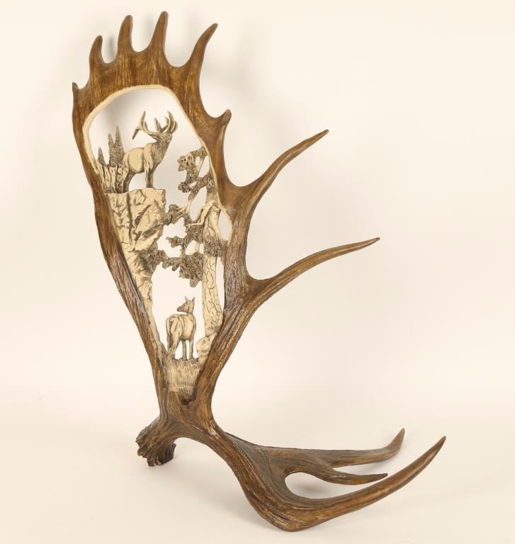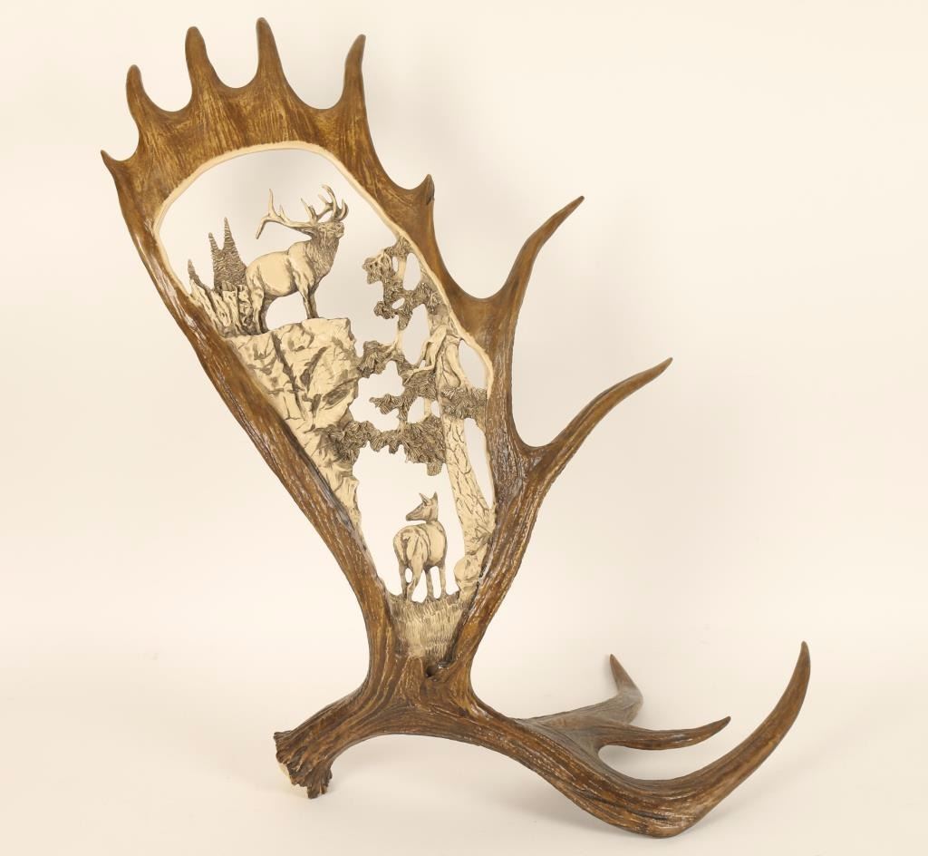 Lifelike antler with openwork carving,. Measures 21" x 29".