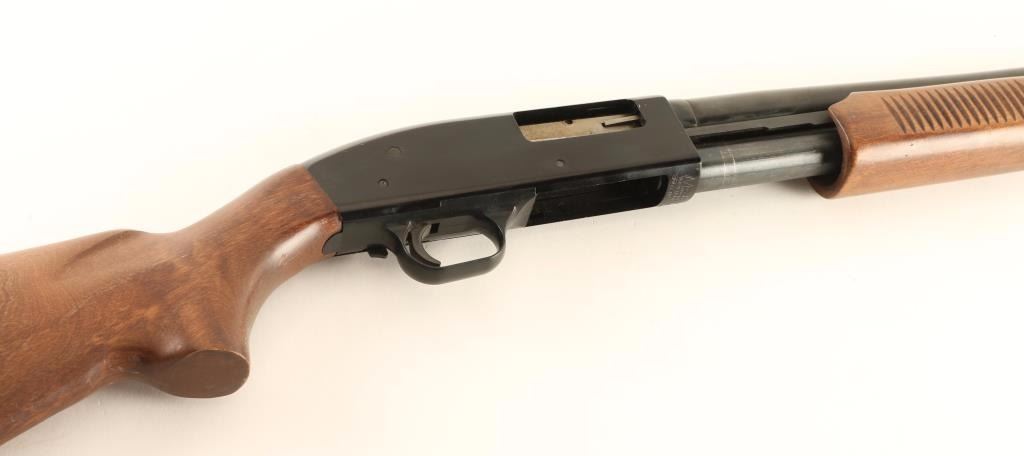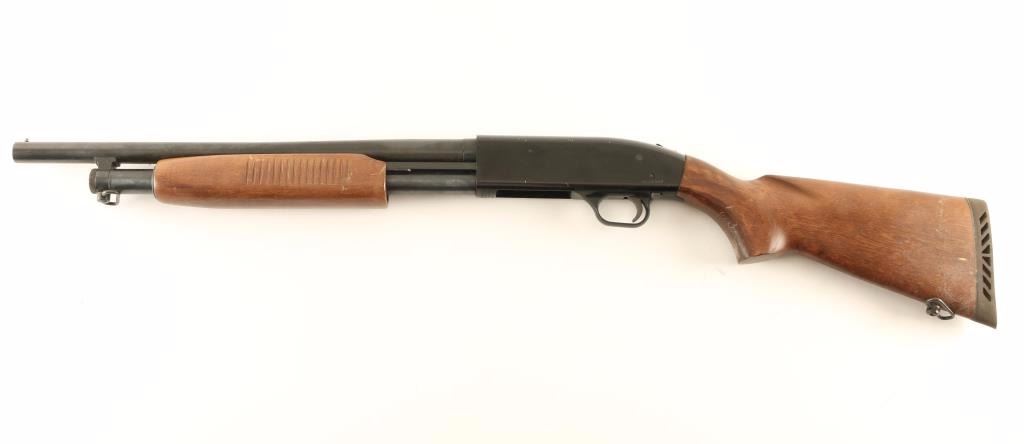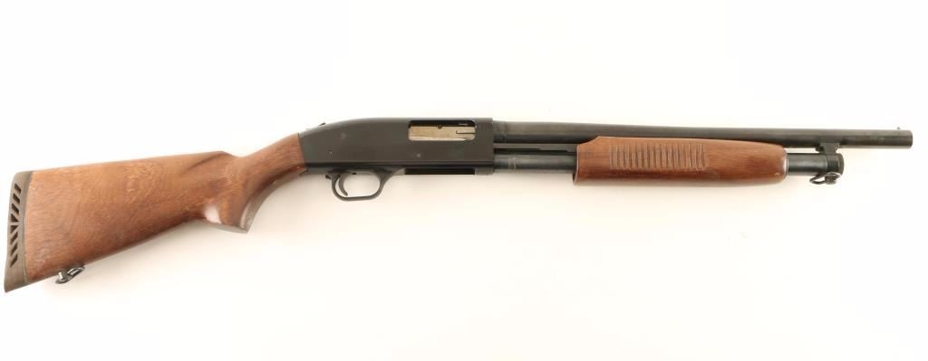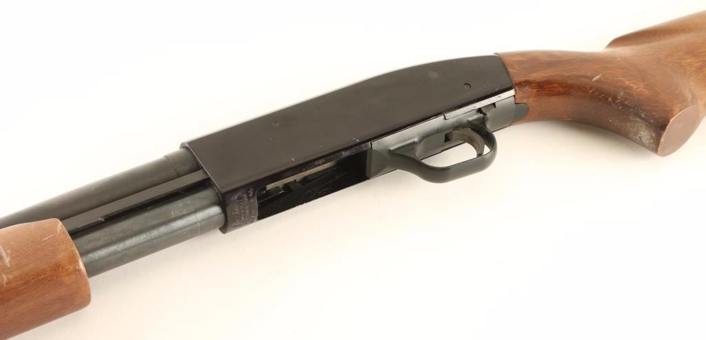 American made slide action repeating shotgun chambered for 2 3/4" & 3" 20 gauge shells, Features a blued/black finish, 18.5" cylinder bore barrel, brass bead front sight, 5 round tube magazine, drilled & tapped receiver, smooth trigger with beveled edges, sliding safety, sling swivels, grooved wood slide handle and pistol grip shoulder stock with recoil pad & 14" LOP. Shotgun exhibits approximately 90% of it's original finish showing light scattered handling marks and dried grease found throughout. Action is smooth, bore is good and wood stocks are good to very good with scattered blemishes. Condition is good. ***Modern Firearm***