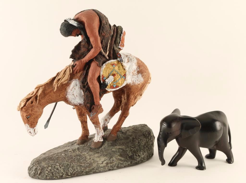 Lot 598 Cast Indian Figurine & Iron Wood Elephant