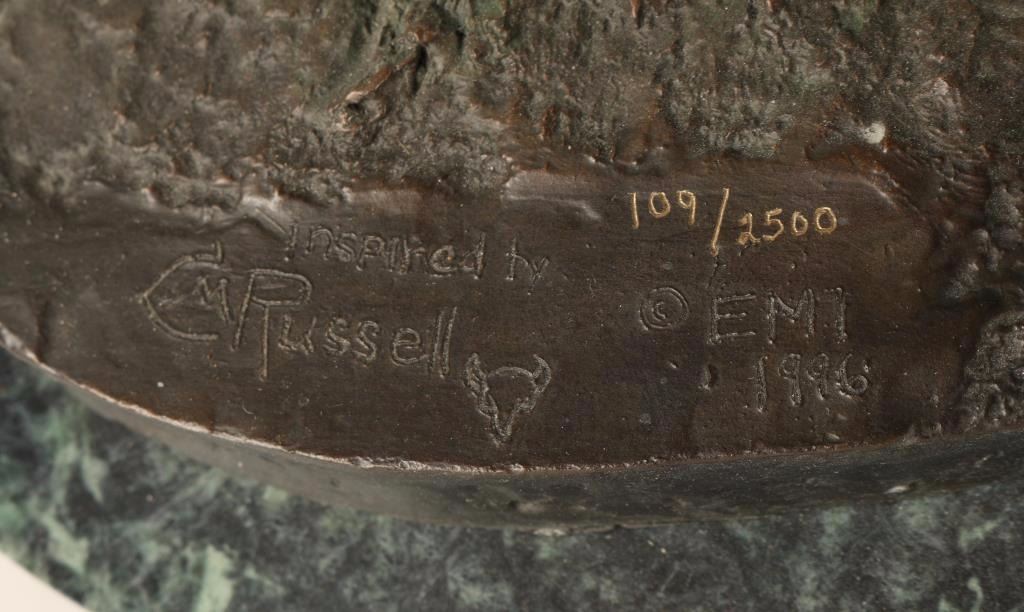inspired by noted artist Charlie Russell entitled Ruffrider, 109/2500, 12"X12". Restrike
