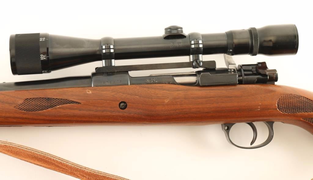 Sporterized Czechoslovakian military bolt action service rifle, rechambered in .30-06 Springfield. Features a blued finish, 24" tapered barrel with raised blade front sight, removed rear sight, Weaver V9-B 3-9x scope on Redfield base, internal box magazine, smooth trigger, manual safety, brown suede sling, and bedded press checkered pistol grip shoulder stock with high comb and rubber recoil pad. Rifle exhibits approximately 98% of it's blued finish showing little wear and some old pitting under the finish on the receiver. Action is smooth, bore is pristine, optics are clear and wood stock is very good++ with few blemishes. Condition is excellent. ***C&R Firearm*** ***Modern Firearm***
