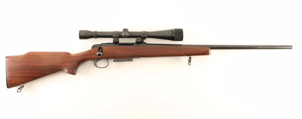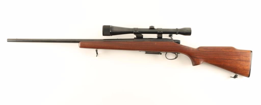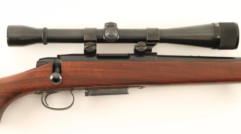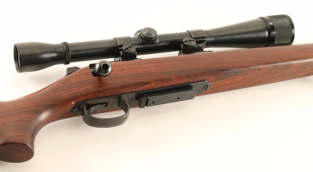 American made magazine fed bolt action sporting rifle chambered in .22-250 Remington, circa 1967-1983. Features a blued finish, 24" tapered barrel, removed sights, Weaver K10 10x scope, manual safety, 4 round magazine, drilled & tapped receiver for a side mount receiver sight, smooth trigger with beveled edges, quick detach sling swivels and smooth walnut pistol grip shoulder stock with high comb & factory buttplate. Rifle retains approximately 92% of it's original finish showing minor wear on the bolt & bolt handle, light scattered oxidation and few handling marks. Action is smooth, bore is pristine, optics are sharp and wood stock is fine. Condition is very good+++. ***Modern Firearm***