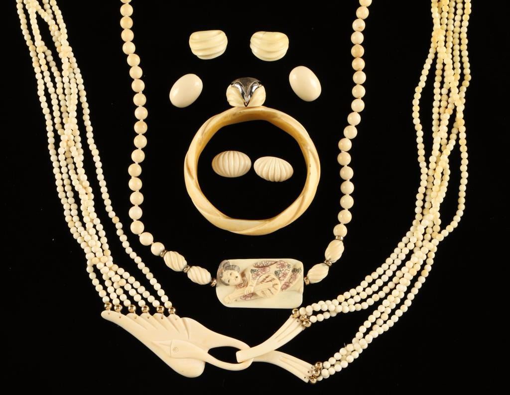 Lot 846 Collection of Ivory Jewelry