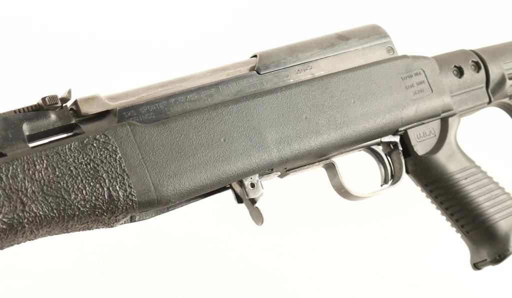 Customized Chinese made gas-operated semi-automatic rifle chambered in 7.62x39mm and accepts AK magazines. Imported by Lananu. Inc of Runkonkoma, N.Y. with import marks on the receiver. Features a blued finish, shortened 16.5" barrel, shrouded post front sight, tangent rear sight, manual safety, no magazine, black synthetic handguard with scope rail, SAW style pistol grip and Tapco black synthetic stock with grip tape on the forend and six-position collapsible butt stock. Rifle exhibits approximately 75% of it's blued finish showing moderate wear and handling marks/scratches. Action is smooth, bore is excellent, and synthetic stocks are near fine. Condition is good++. ***Modern Firearm***