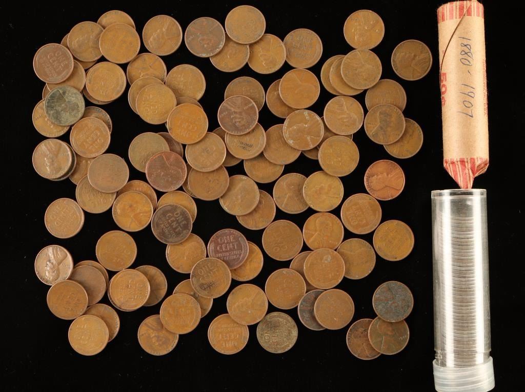Wheat pennies, 1943 steel war pennies and Indian head pennies1880-1907.