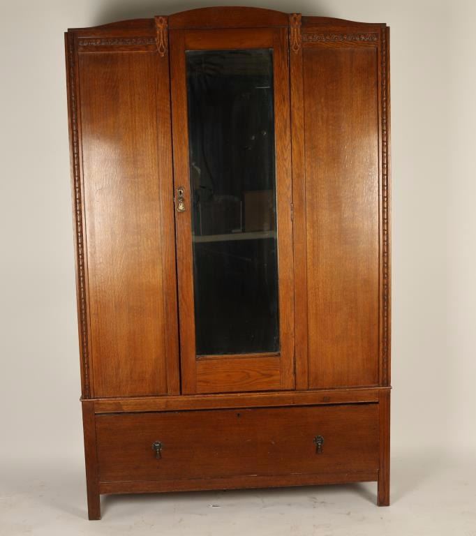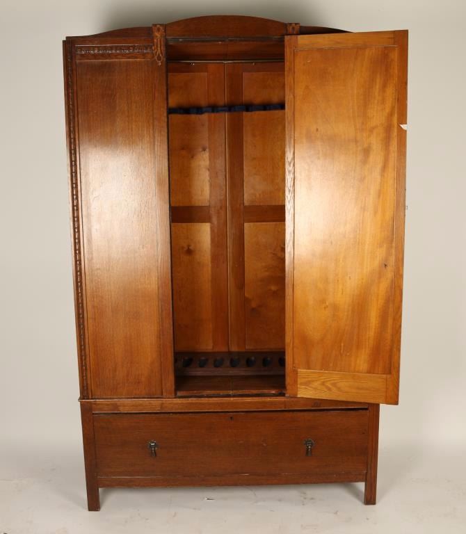 Art Deco period armoire with rifle rack inside, with lower storage drawer, mirrored door. 73 1/2"X47x16 1/2"