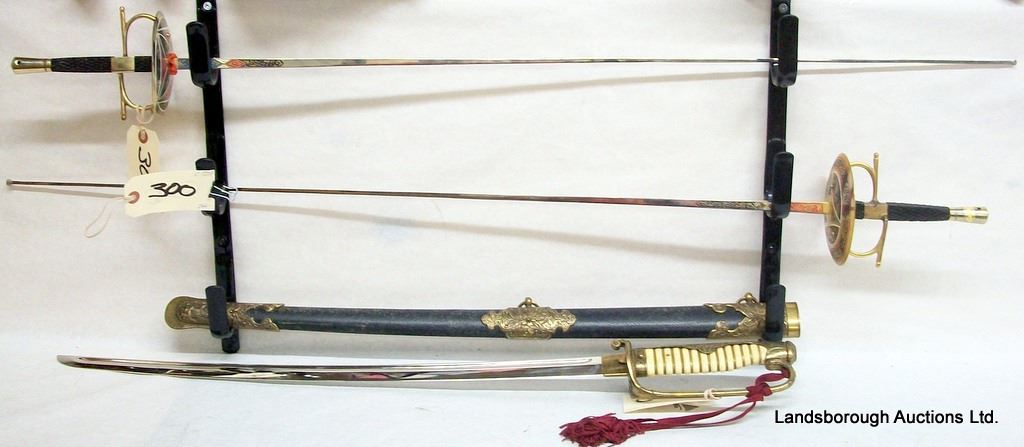 Lot 300 DISPLAY SWORD AND PAIR OF RAPIERS
