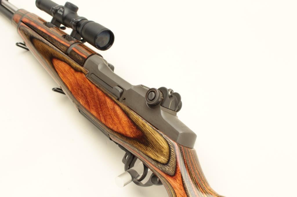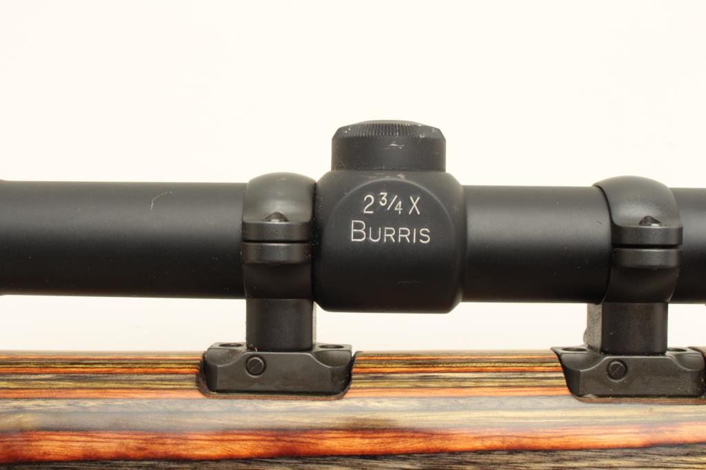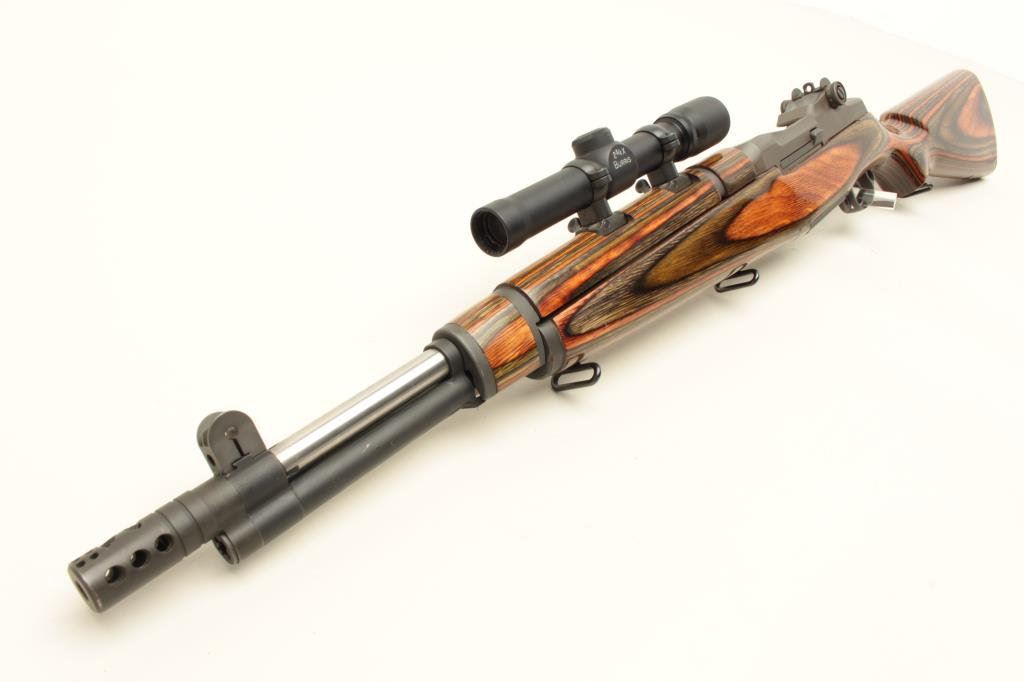 Corps Weaponry U.S.M.C. Match-marked barrel, laminated wood stock, S/N 499056, mounted with a Burris 2-3/4 X scope with sharp optics; overall excellent condition as custom built. (Modern). Est.: $1,000-$2,000.