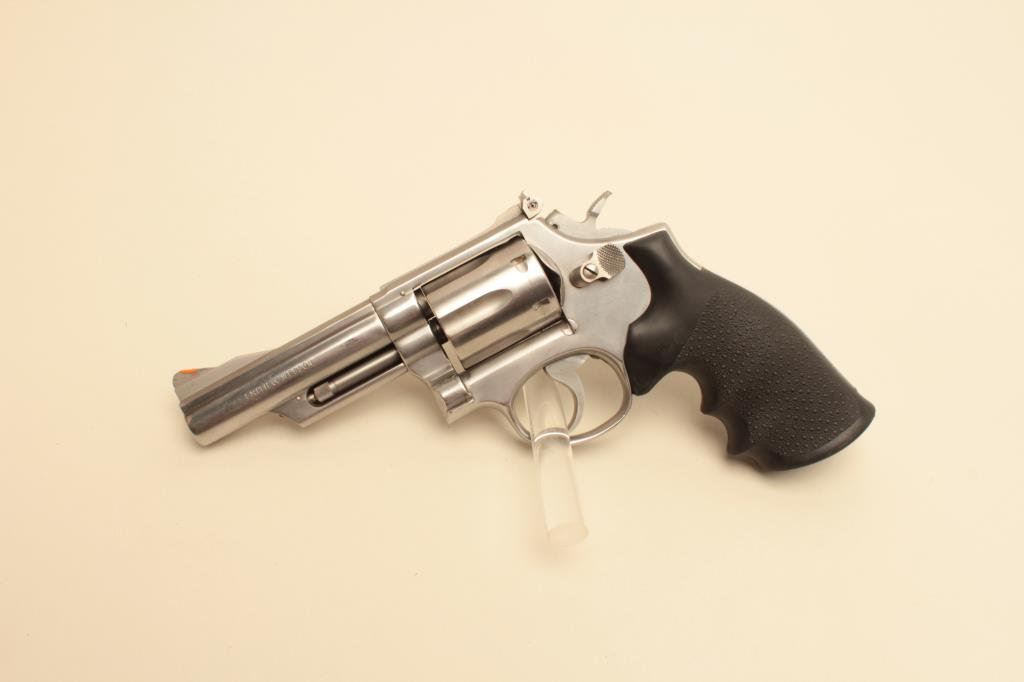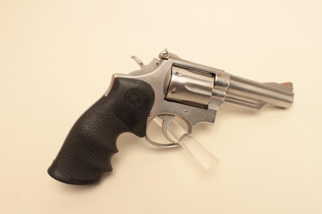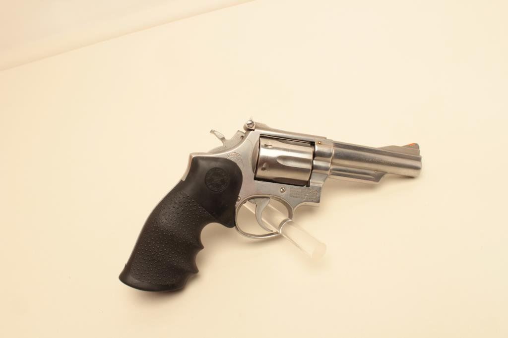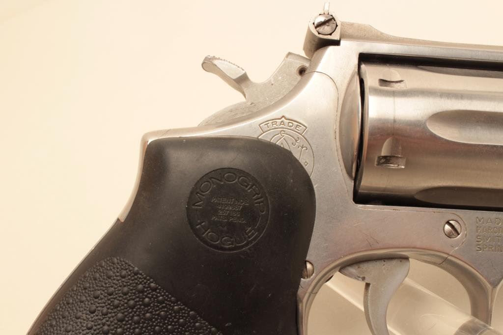 Magnum caliber, 4” barrel, stainless, Hogue stippled finger groove hard rubber grips, S/N 4K61768, in overall very good to fine condition with a crisp action and markings, very good to fine bore, very good grips. (Modern/PPT). Est.: $300-$600.