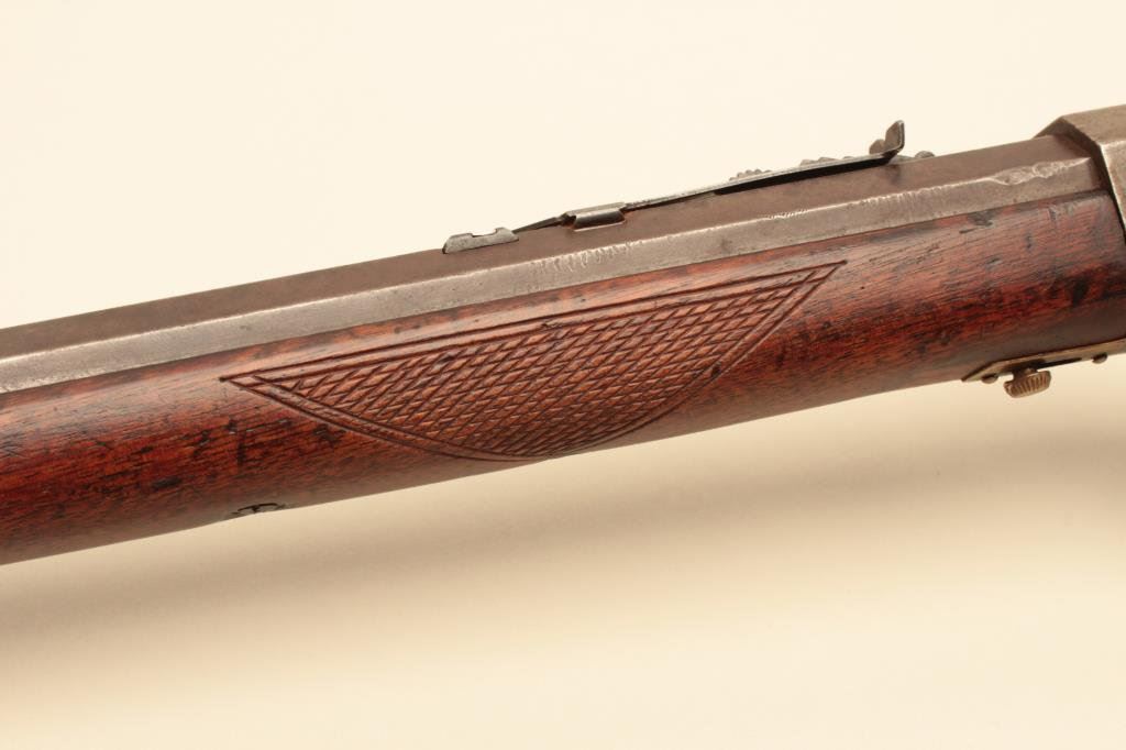 26” octagon barrel, hand checkered wood stocks, S/N 13931, in overall good + condition with dark patina to metal surfaces, good action, good markings and good wood; bore is worn, extractor has been changed. (Antique). Est.: $400-$800.