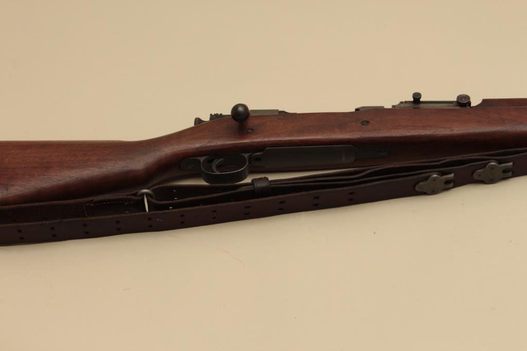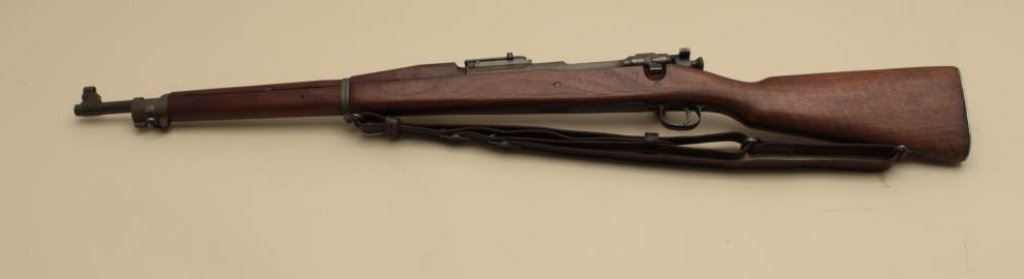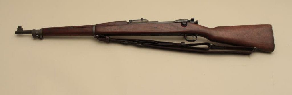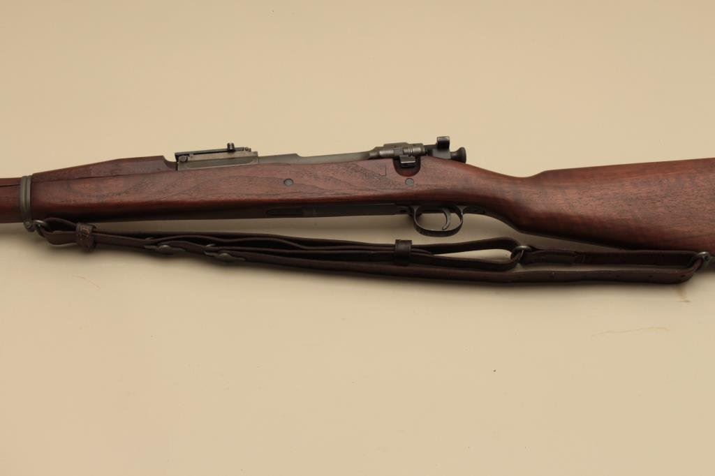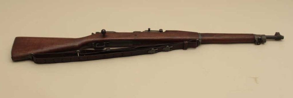 .30-06 caliber with RIA barrel dated 10-18, military finish, wood stock, leather sling, S/N 305635, in overall very good condition with a very good bore, crisp action, sharp markings and very good wood displaying P proof and partial inspector’s cartouche on left side of stock above trigger. (C&R/PPT). Est.: $600-$1,200.