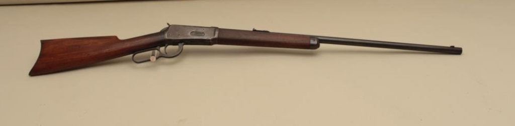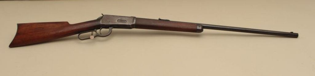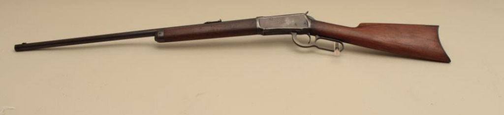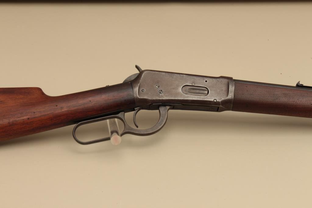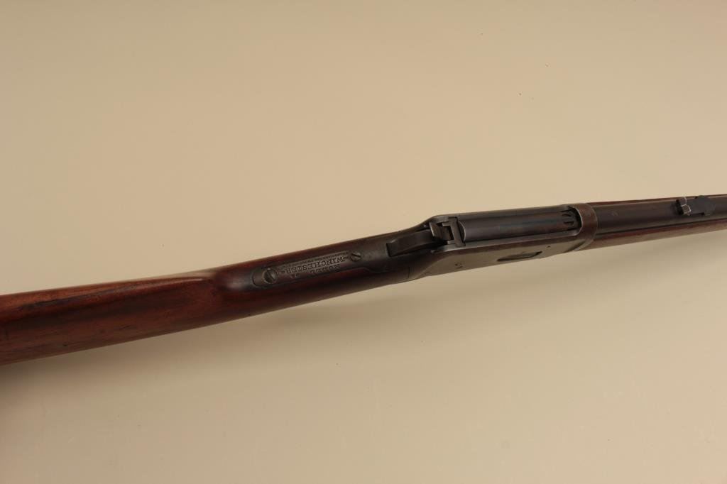 26” round barrel, button magazine, blued finish, wood stocks, S/N 994439, in overall good to very good condition displaying the majority of its original muted blued finish on barrel with receiver gone to a brown patina, very good bore, crisp action, very good markings and wood with normal aging and wear (C&R). Est.: $800-$1,600.