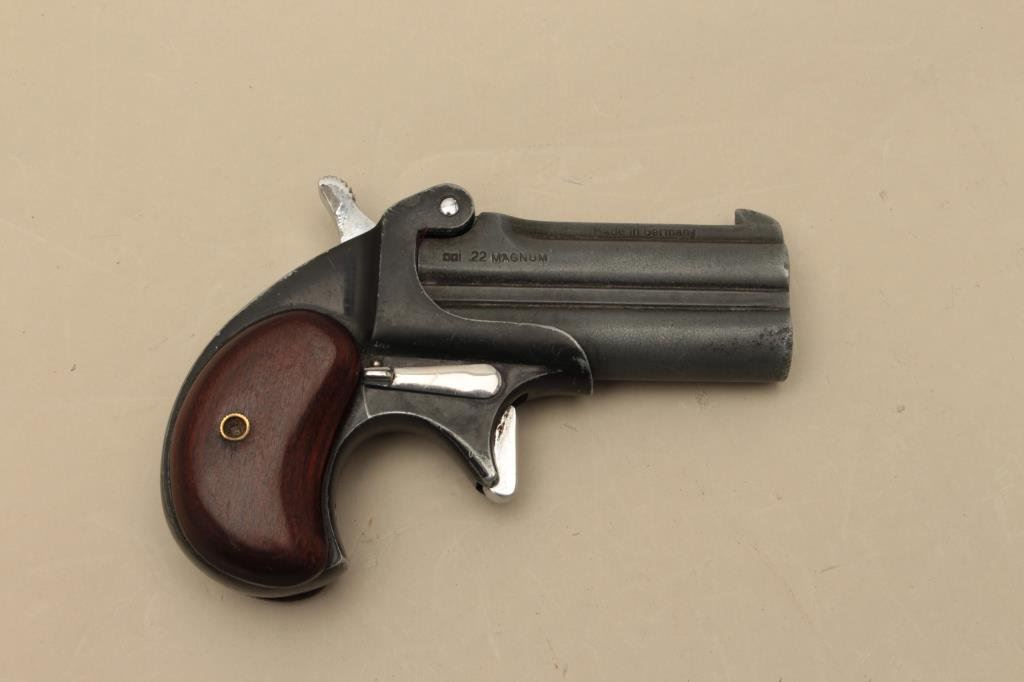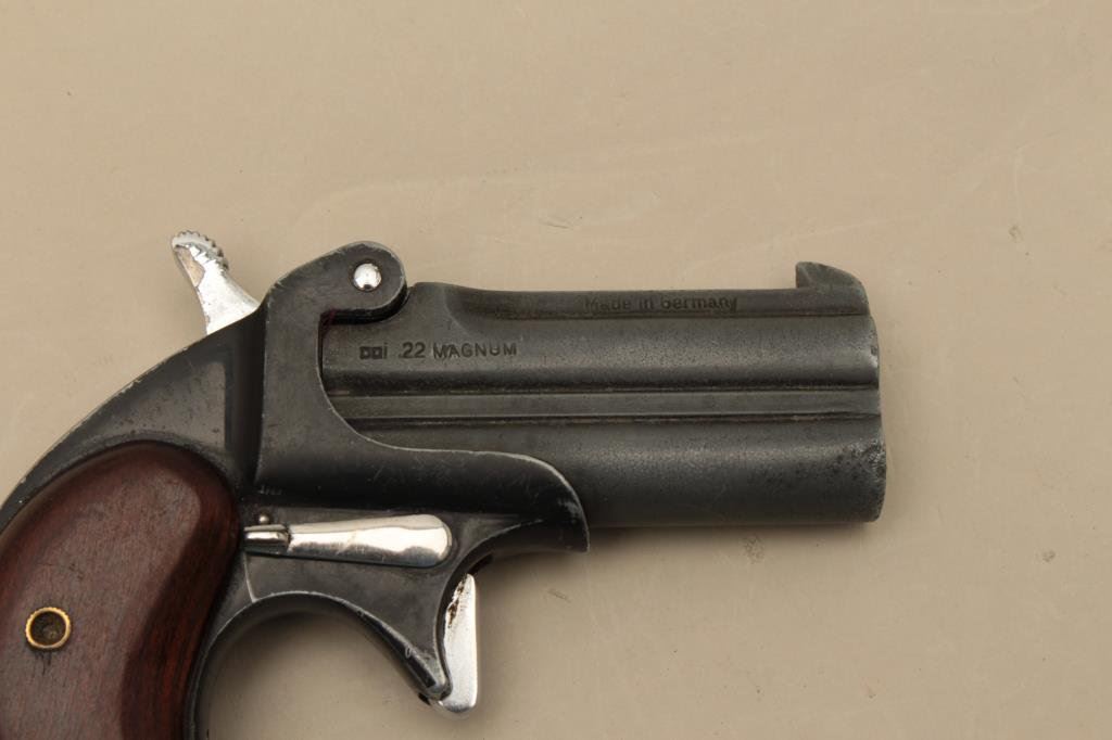 Lot 575 German-made O/U derringer by Hawes.22 Magnum caliber, 2.5 barrels, wood