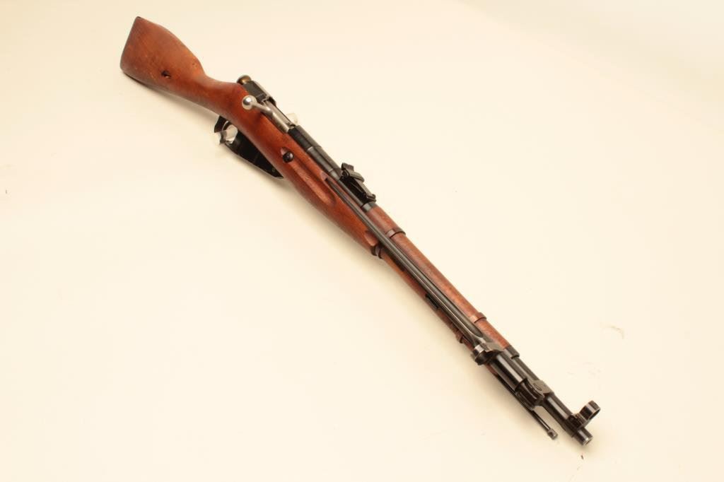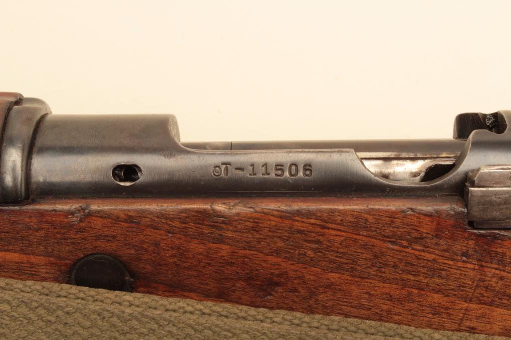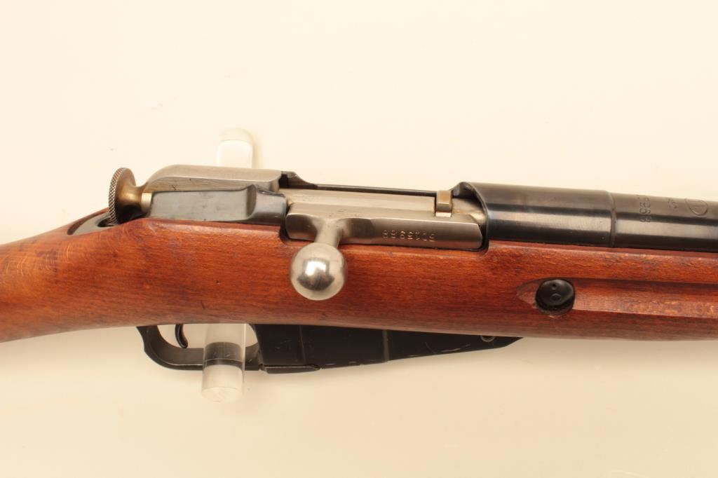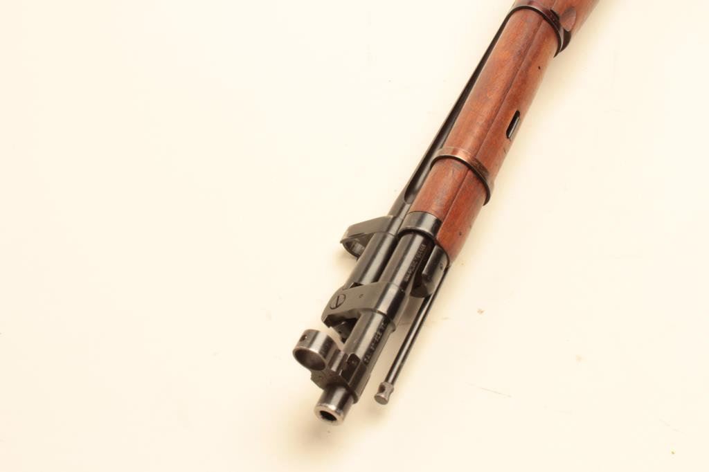 #BD15968. The carbine is in very good overall condition with a 21” barrel with an aircraft style hooded front and military tangent rear sights. The carbine also features a folding spike style bayonet. The barrel and receiver retain the majority of their military style finish with only light handling marks. All visible serial numbers are matching and the receiver is dated 1952 on the front ring and import marked on the barrel. The smooth wood stock is in very good condition with cartouches on the butt stock and behind the trigger guard. The butt also has letter stenciled on the left side and ends with a smooth steel butt plate. The bore is fair, the action crisp and markings are sharp. Est.: $125-$250. (C+R).