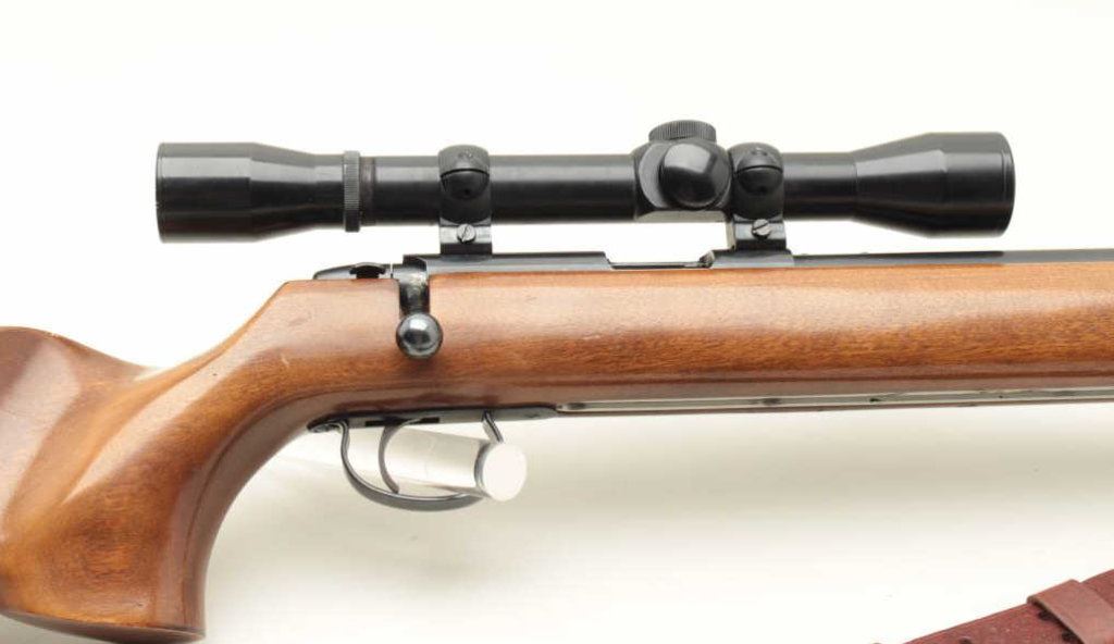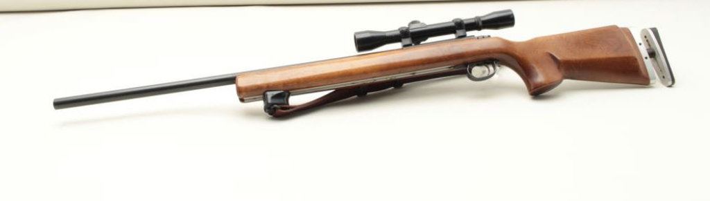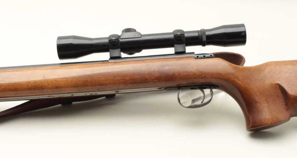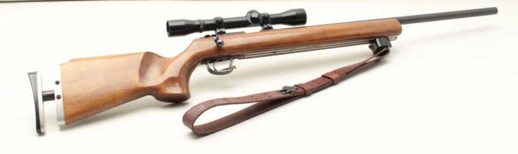barrel, blued finish, target wood stock with adjustable sling rail and adjustable butt plate, S/N 1090872, in overall very good to near fine condition with leather sling. (Modern). Est.: $500-$1,000.