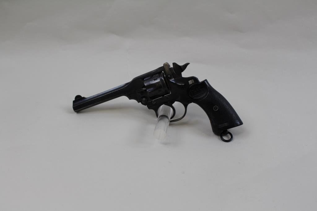 Lot 825c Webley MK IV .38 caliber double action revolver with early