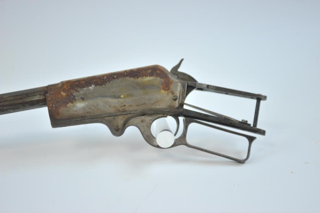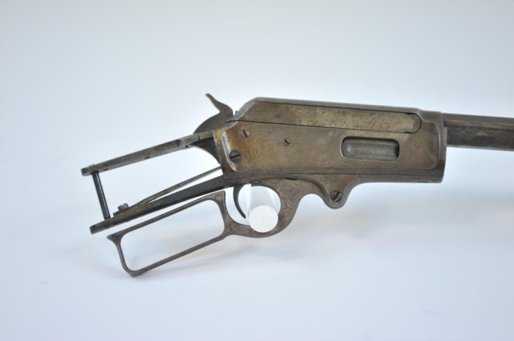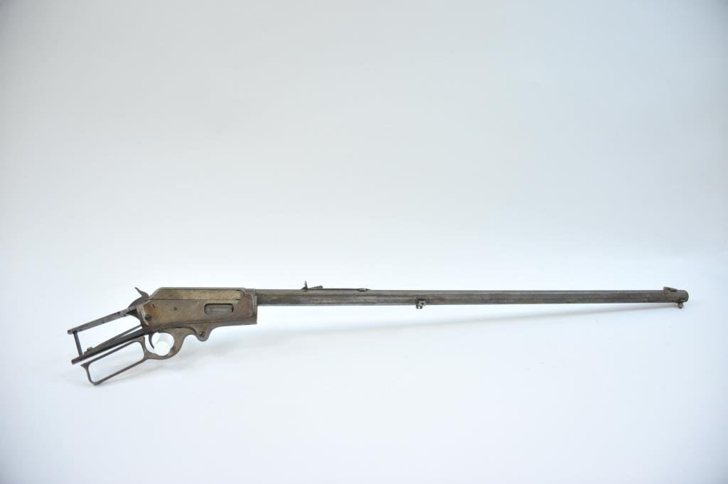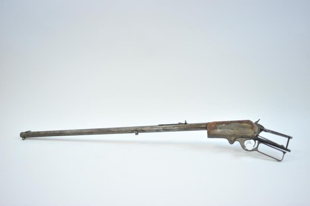 25-35 cal, 20" barrel in good condition with a decent bore; and a Marlin 1893 #136999, .38 cal, 26" octagon barrel, no mag tube. Action is in fair to good condition with some corrosion on the right side of the frame. (C&R) Est.: $100-$200