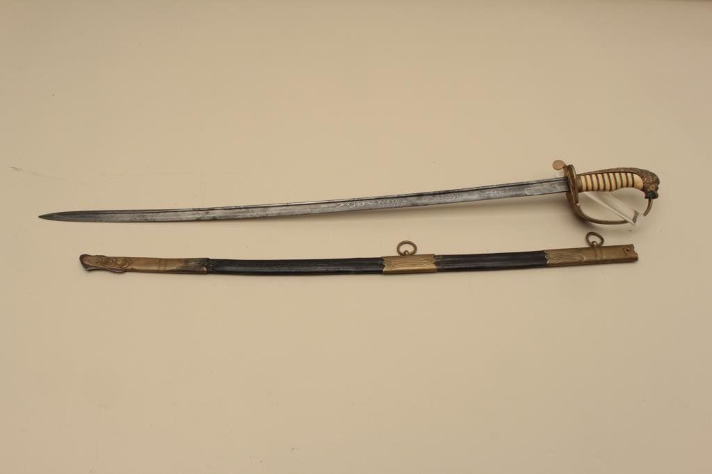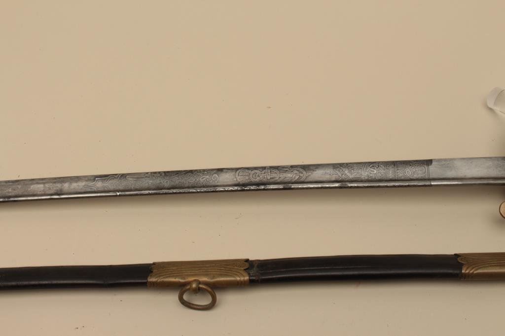 Lot 1076 German Naval sword and brass mounted leather scabbard by Eisenhauer;