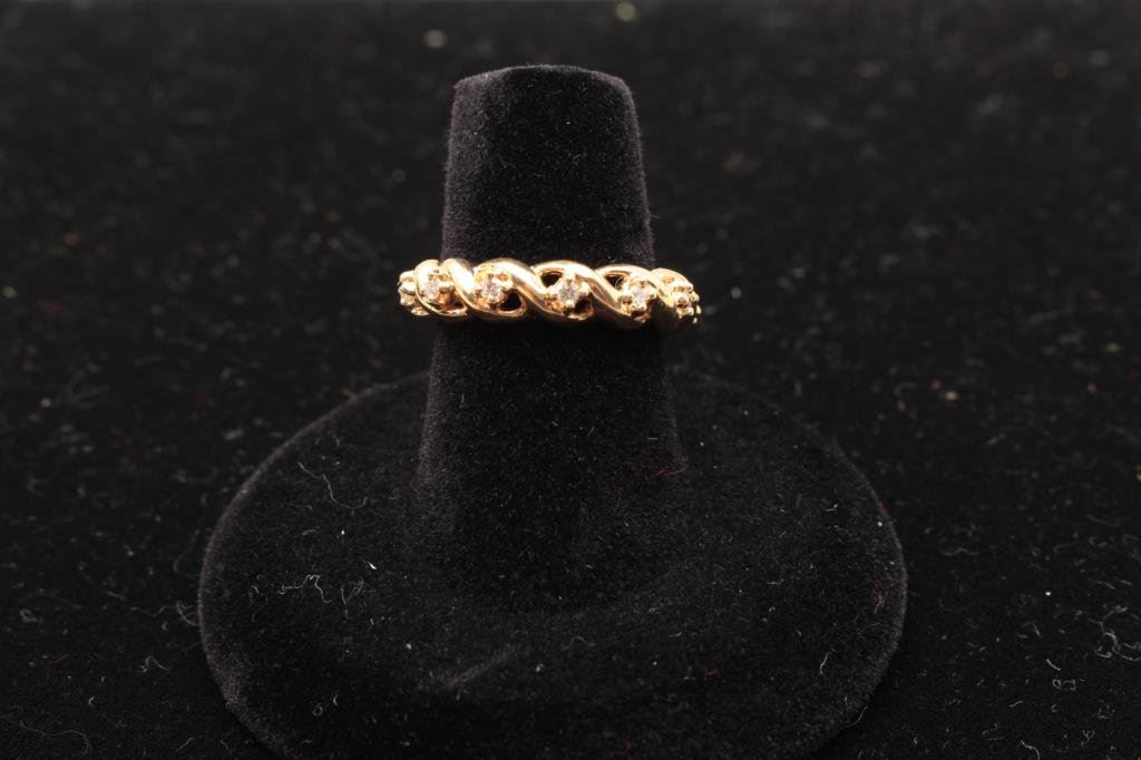 Lot 1175a Unique twisted 14k yellow gold band set with 11 diamonds