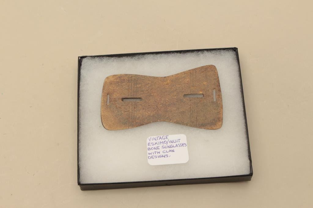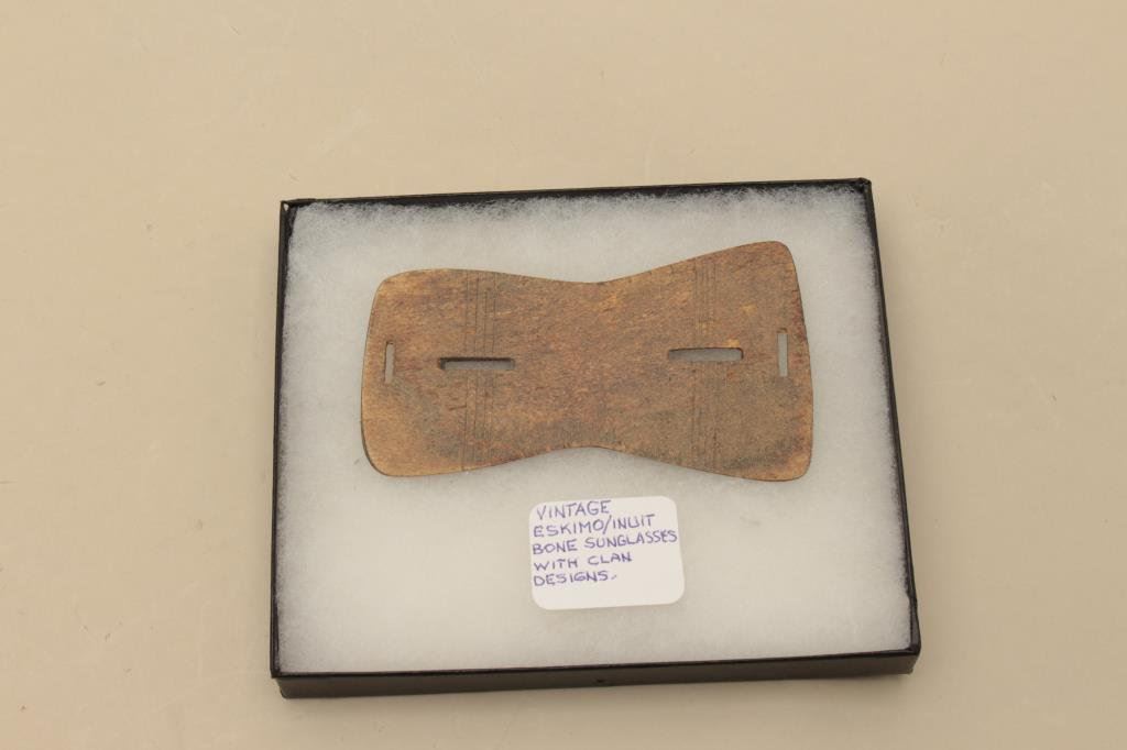 Lot 1176 Riker case containing a vintage Eskimo/Inuit bone sunglasses with clan