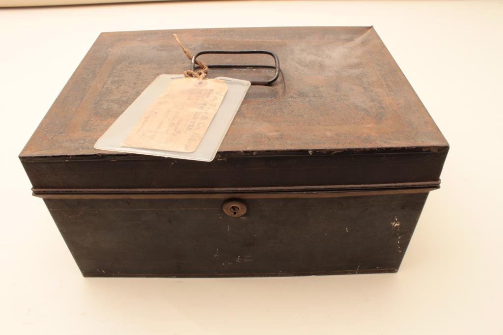 Lot 1219 Locking Japaned tinned mid-19th century box measuring 6 x