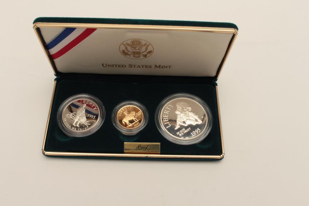 Gold Five Dollar, of Civil War Bugler Art by Don Troiani. Silver Dollar, Silver Half Dollar. Proof in Box with Certificate. Est:$300-600