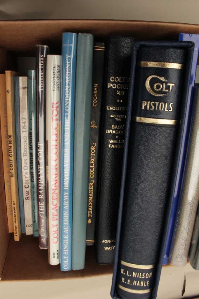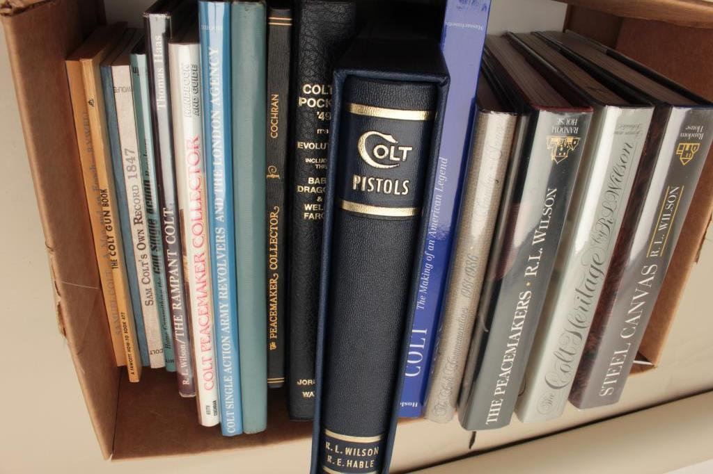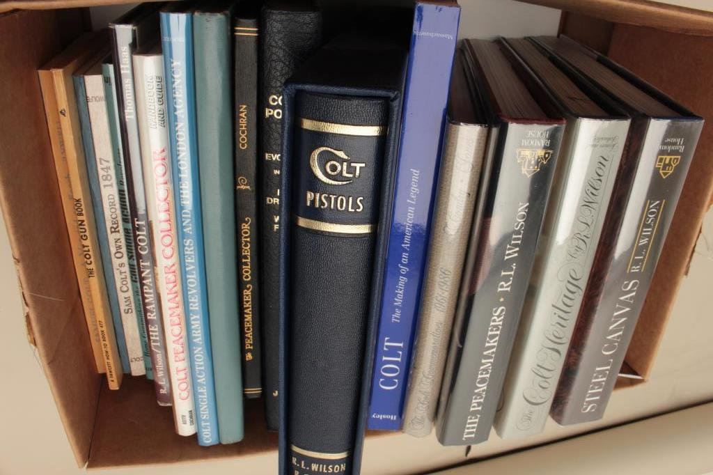 including Wilson & Hable’s “Colt Pistols”, “Peacemaker Collector” by Cochran, Colt’s Pocket ’49; it’s Evolution including the Baby Dragoon & Wells Fargo” by Jordan and Watt, “The Colt Heritage”, “The Peacemaker” and “Steel Canvas by R.L. Wilson and more, including a number of out-of-print reference works. Est.: $150-$300.