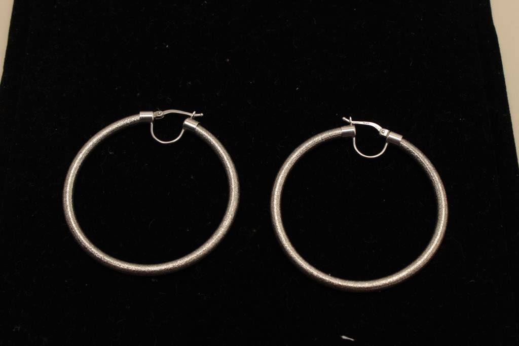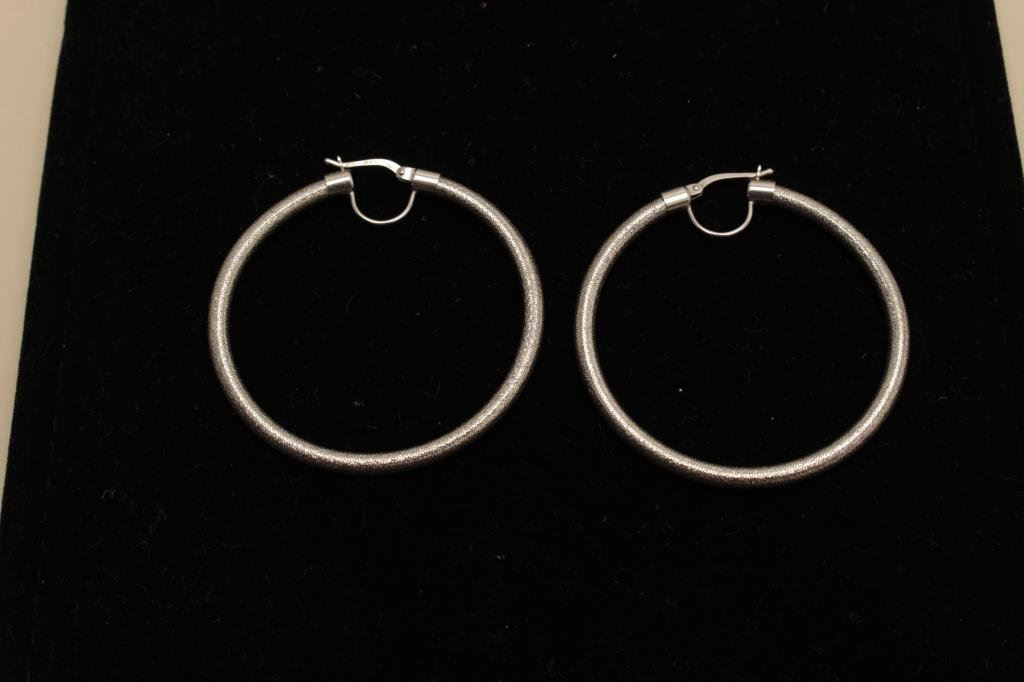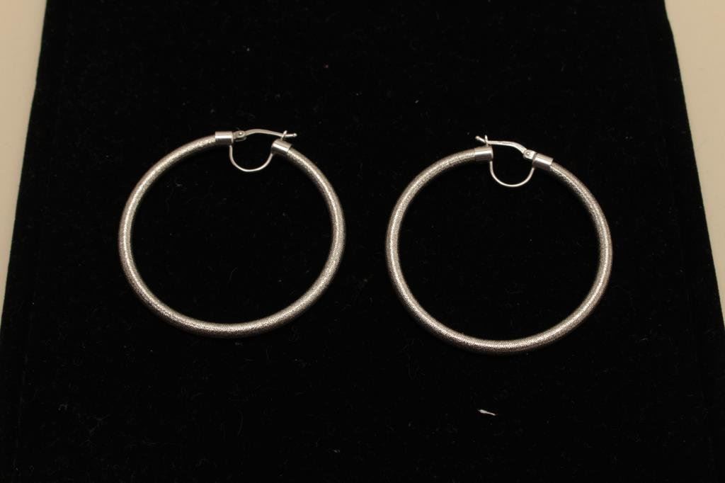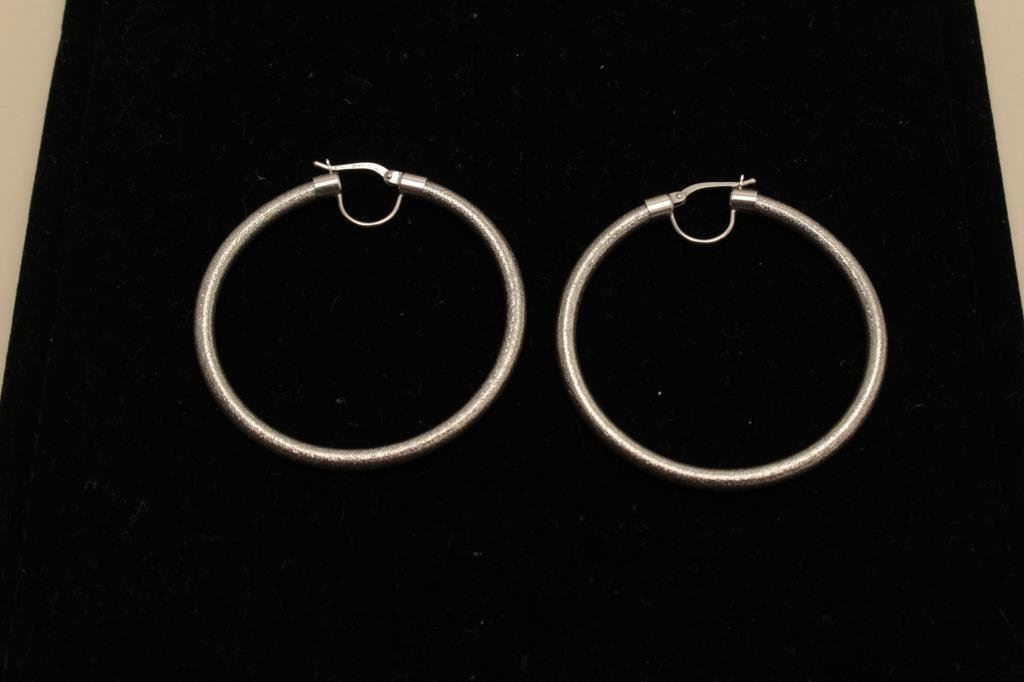 Lot 1445 2 wg hoop earings wg custom embossed gold 4.46gr. Est.:
