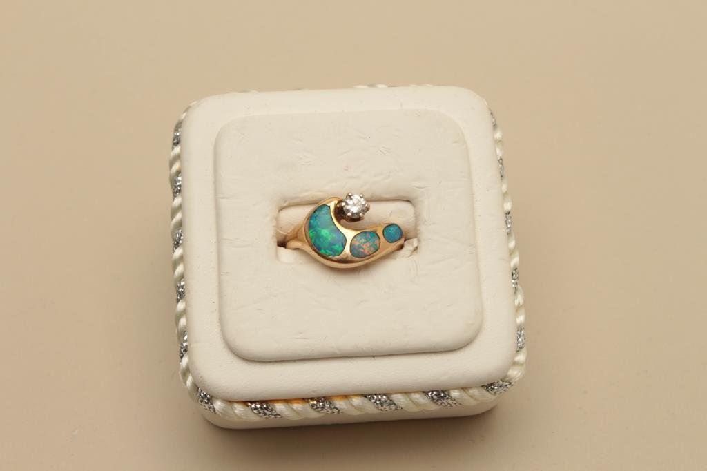 Lot 1448 Diamond and Australian black opal ring with 14kt YG tested.