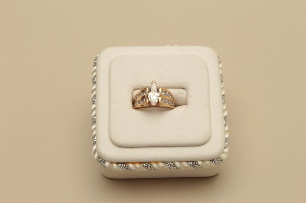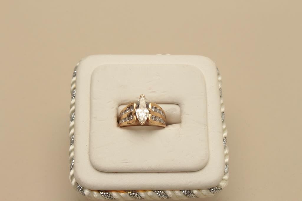 Lot 1476 1.02 Marq Sol Diamond Ring .60 side diameter 14kt(tested). Estate
