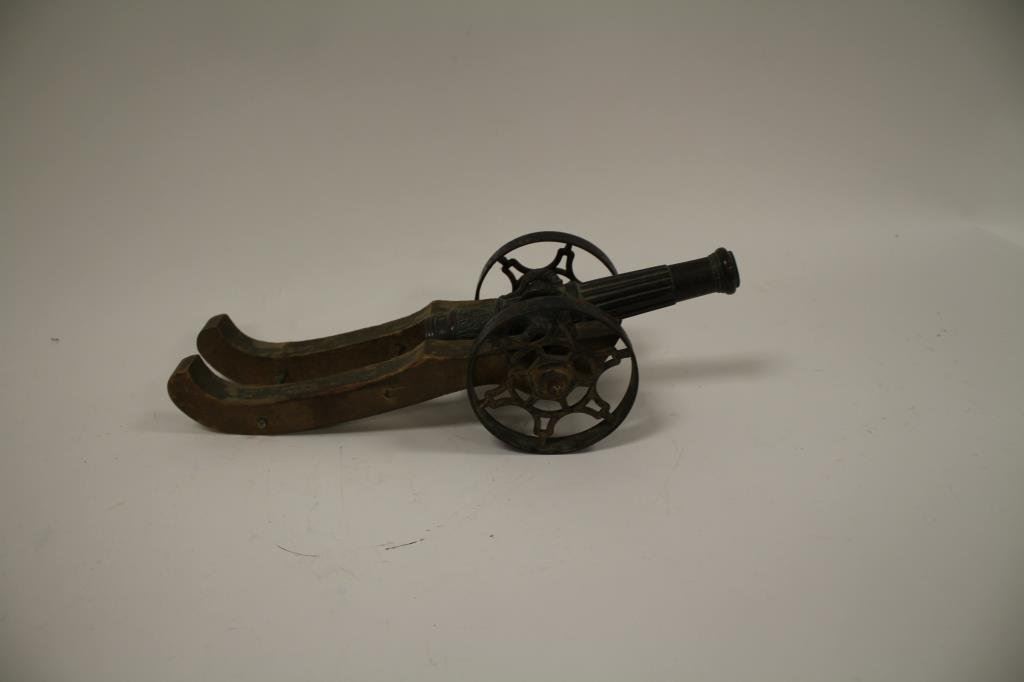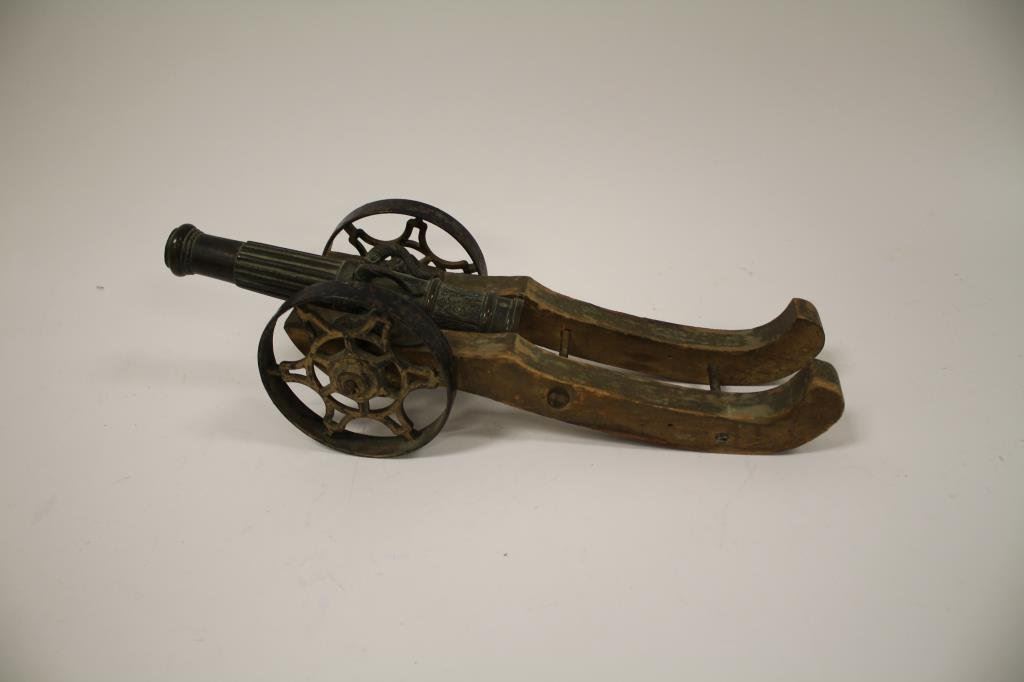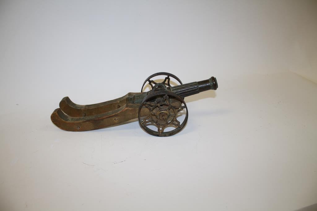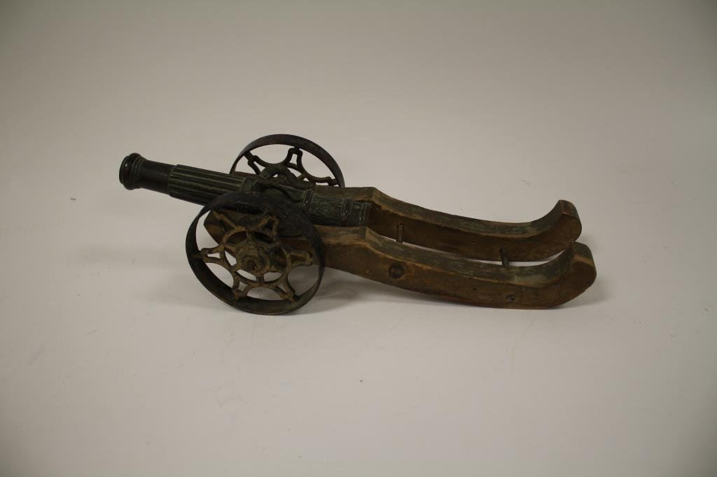 Lot 1608 Antique desk size decorator cannon with cast bronze tube on