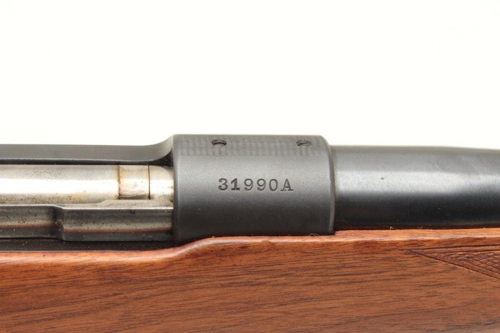 blued finish, checkered wood stock, S/N 31990A, in overall very good to near fine condition with a very good + bore crisp action, sharp markings and majority of original finish to metal surfaces; very good to near fine stock. (Modern). Est.: $300-$600.