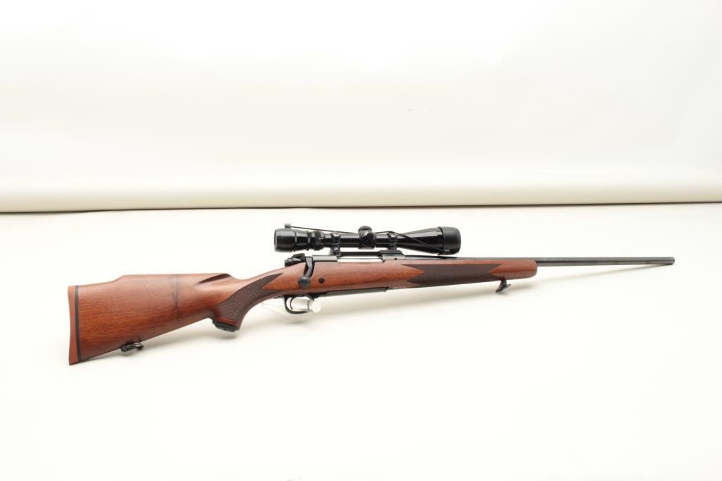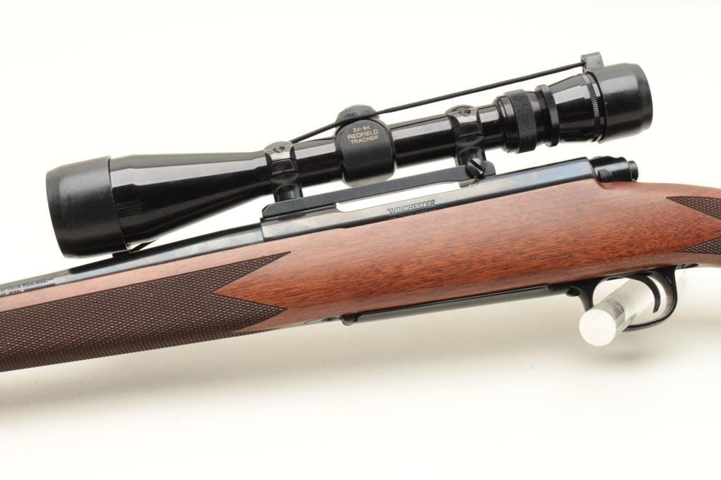 caliber, 24” barrel, blued finish, checkered wood stock, S/N G1855243, mounted with a Redfield Tracker 3X-9X scope with fine optics; gun is in overall fine condition. (Modern). Est.: $350-$700.