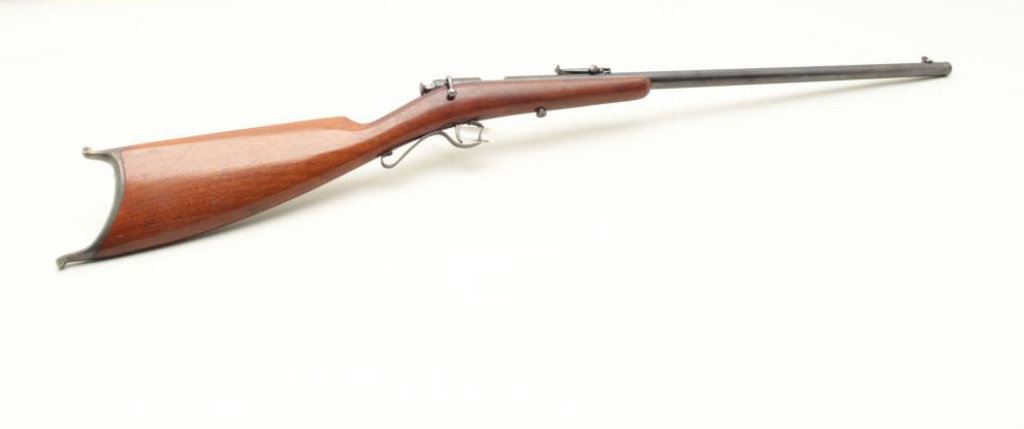 LR caliber, 22” round barrel, blued finish, wood stock, S/N 14625; bright bore, good action, good markings, majority of original muted blued finish, good stock. (C&R). Est.: $150-$300.